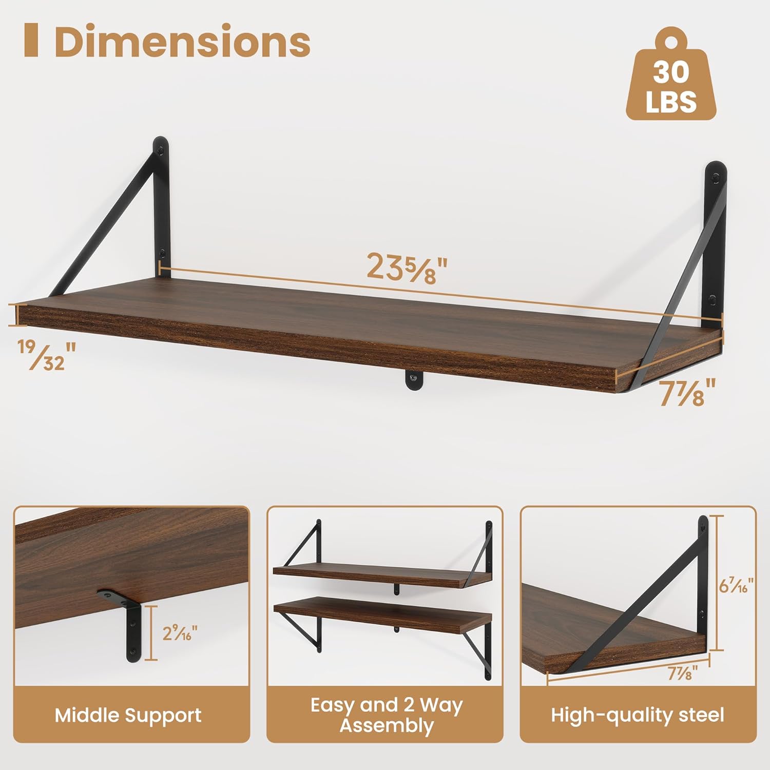 - 【Practical Wall Bookshelf】Our 23.6"W x 8"D floating shelves are your good helpers if you need extra storage space,or want to add green decorations-small indoor plants,photo frames,collection books. These floating bookshelves can free up floor and counter space,making bedrooms,living rooms and offices more tidy.