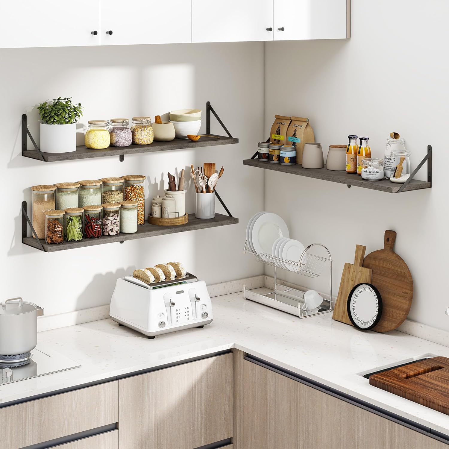 Heimlove 36 Inch Floating Bookshelves Set of 3,Wall Bookshelf Heavy Duty Wall Mounted Bookshelves for Living Room,Bedroom,Kitchen,Laundry Room Storage & Decor,Silver Grey