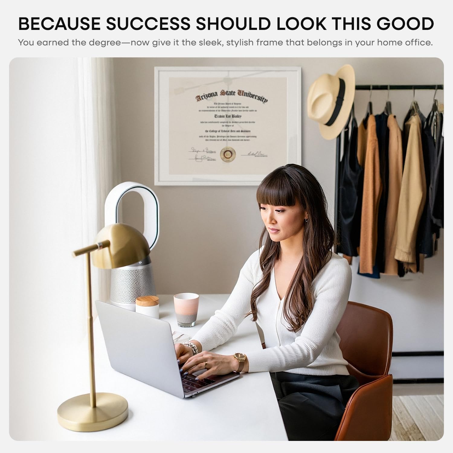 Homeforia 16x20 Diploma White Frame, High End Oak 16 x 20 Certificate Wood Frames with Mat 14 by 17 inch, 20x16 Document Frame Matted to 14x17, Wooden Degree Frames, Tempered Glass, Wall Kit, Set of 1