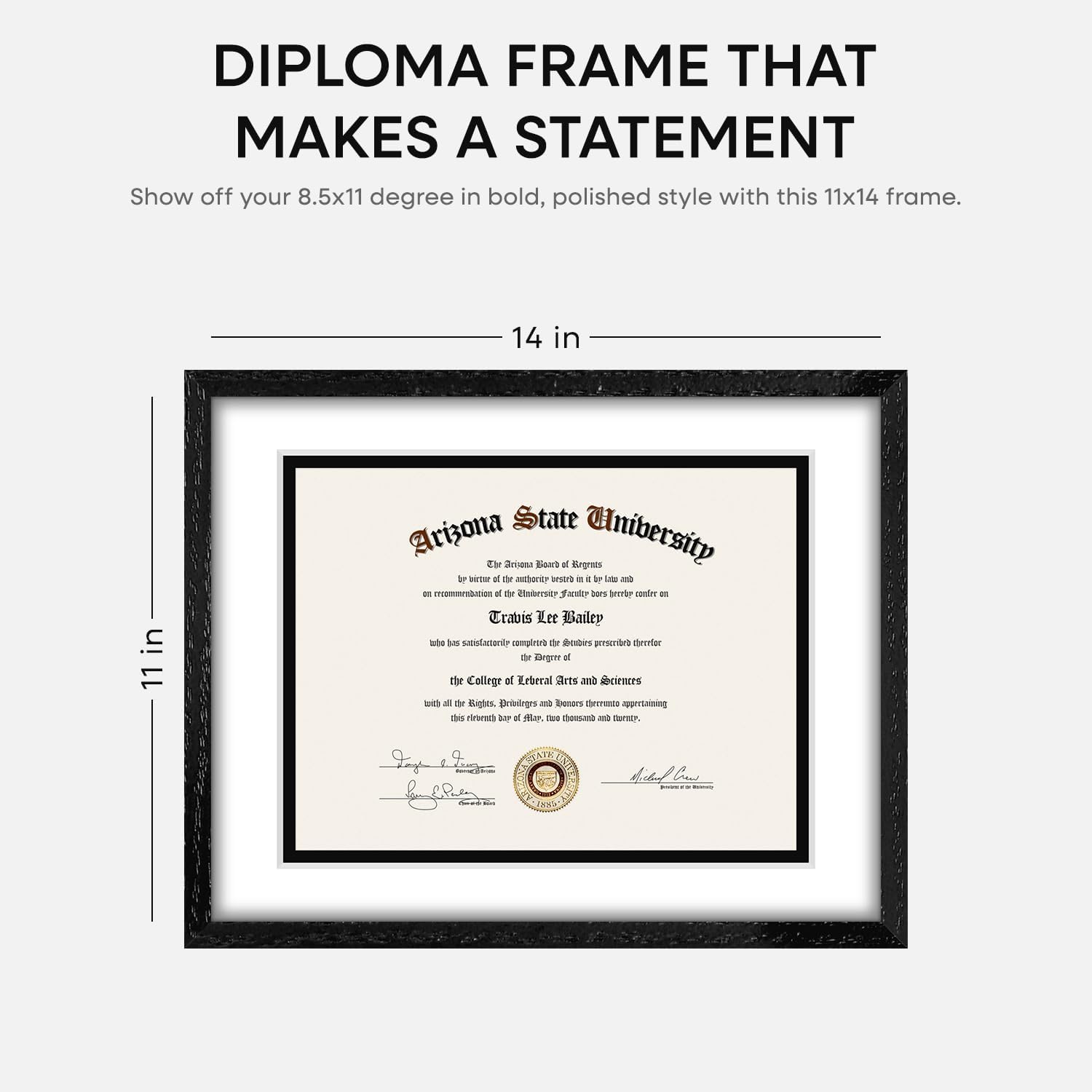 Homeforia 11x14 Diploma Frame Black Wood, High End Black Oak 11 x 14 Certificate Frames with Mat 8.5x11, 14x11 Wooden Document Matted Frame, Award Graduation Frames, Tempered Glass, Wall Kit, Set of 1
