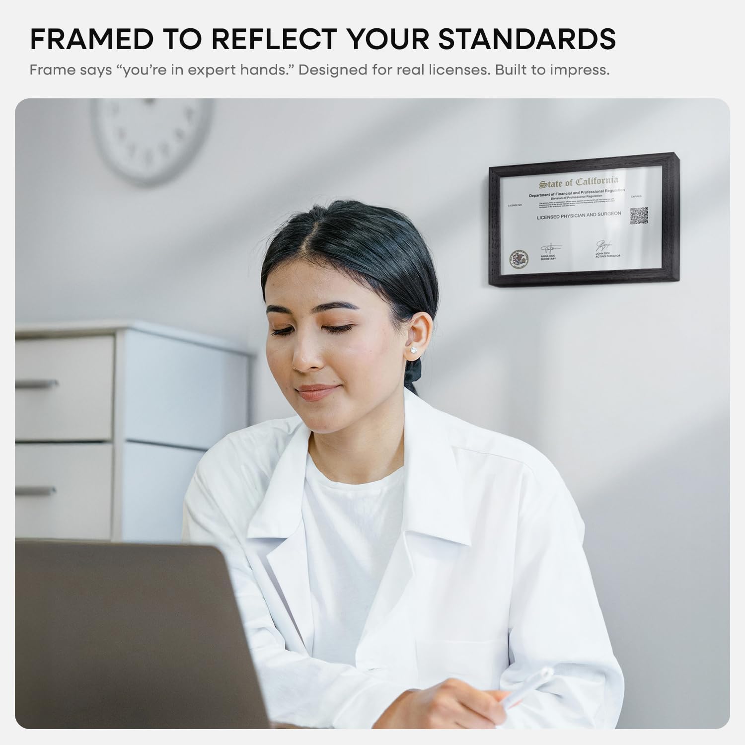 Homeforia 5.5x8.5 Business License Frame Black, High End Oak 5.5 by 8.5 Wood Certificate Frame, 8.5 x 5.5 Document Frame for Wall or Tabletop, Wooden Picture Frames, Tempered Glass, Wall Kit, Set of 1