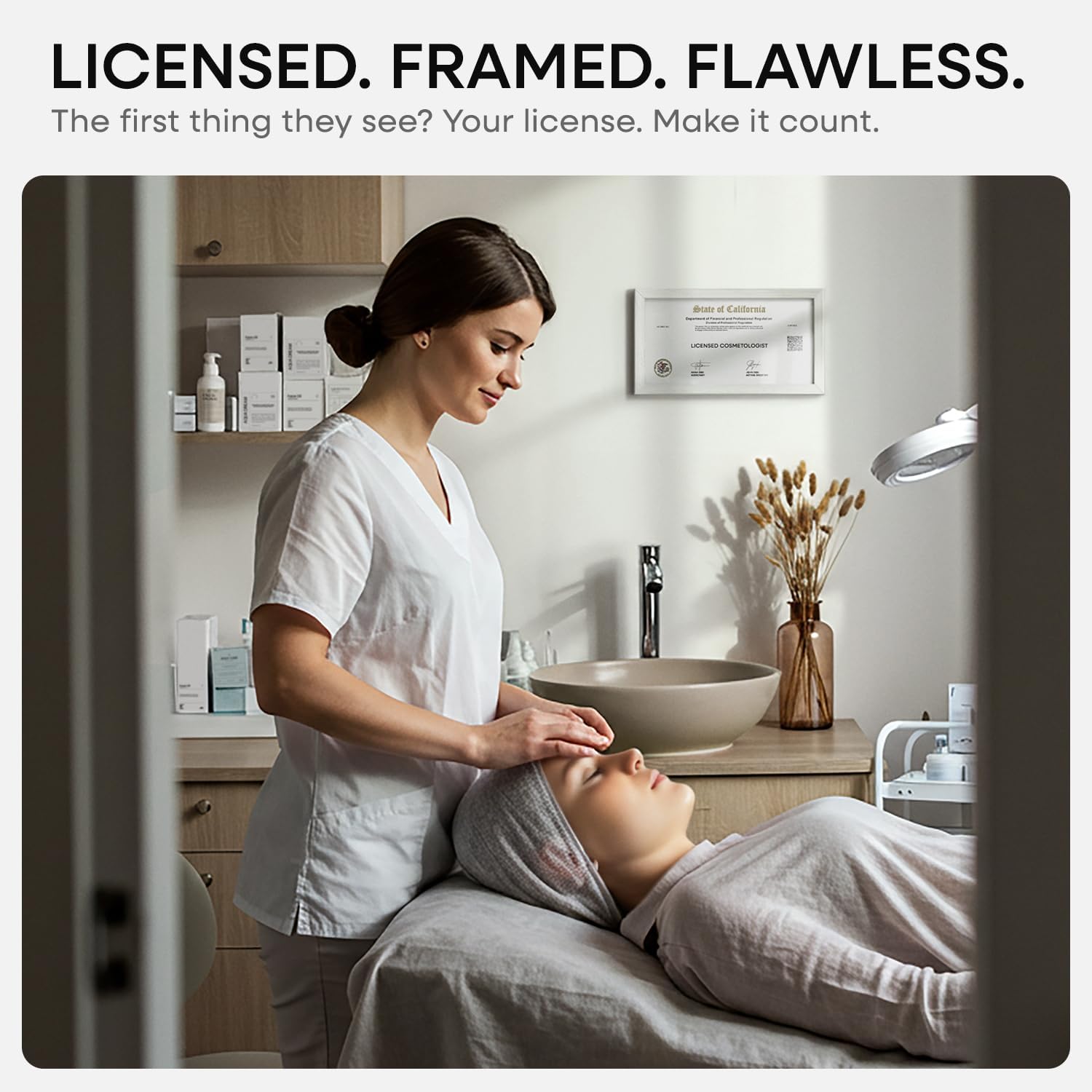 Homeforia 5x10 Business License Frame White, High End Oak 5 x 10 White Wood Document Certificate Frame with Mat 4x9, 10x5 Wooden Picture Frames for Wall or Tabletop, Tempered Glass, Wall Kit, Set of 1