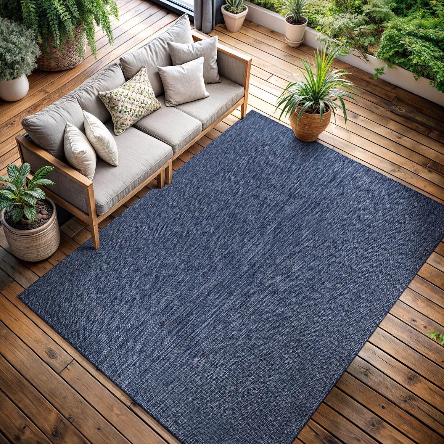 CAMILSON Outdoor Rug 5x7 Modern Area Rugs for Indoor and Outdoor Patios and Porches - Waterproof, Washable, Non-Shedding, Easy-to-Clean Outside Carpet (5 x 7, Solid - Navy Blue)