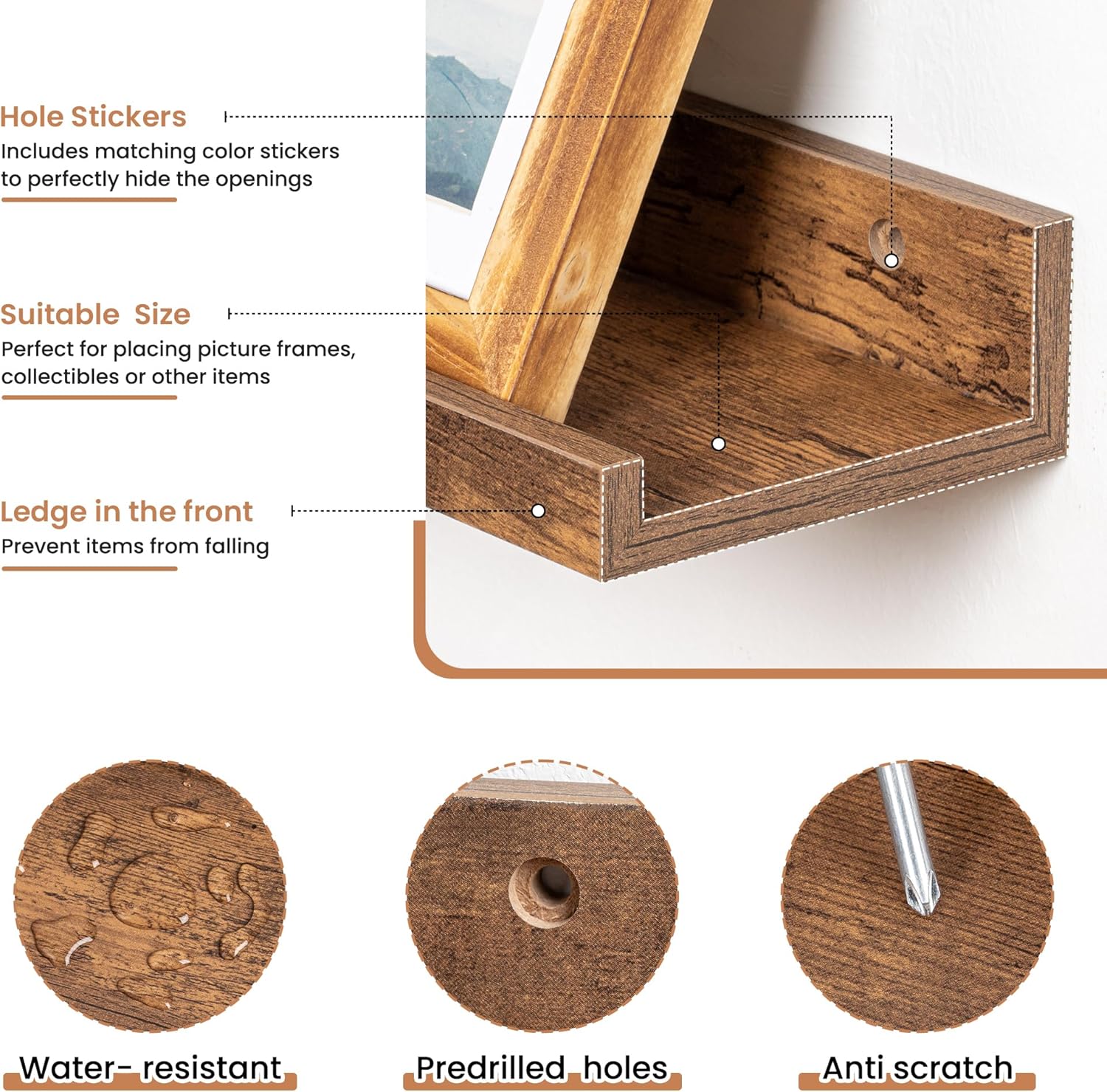 - Enhanced Stability Design: Featuring a secure lip at the front, these floating shelves prevent items from slipping or falling, confidently supporting up to 65 lbs, making these MDF wood shelves ideal for showcasing cherished items.