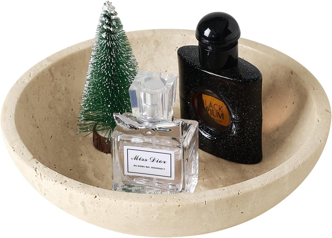 Marble Decorative Bowl for Kitchen Counter, Natural Travertine Serving Bowl with,Modern Display Bowl for Dining Table Centerpiece Home Decor(7.8 Inch)