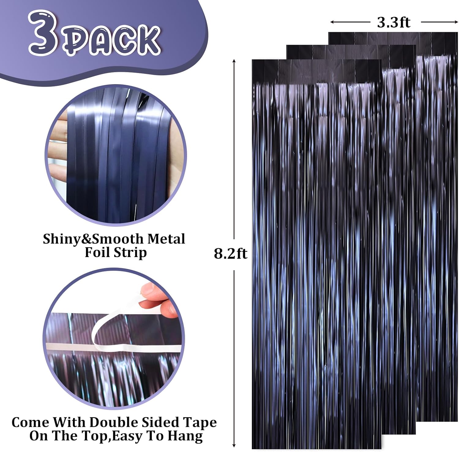 3 Pack 3.3 x 8.2 ft Matte Blue Foil Fringe Curtains, Dark Blue Tinsel Streamers Batman Party Decorations, Fringe Backdrop, Door Shimmer for Graduation, Birthday Backdrop for Men or Boy