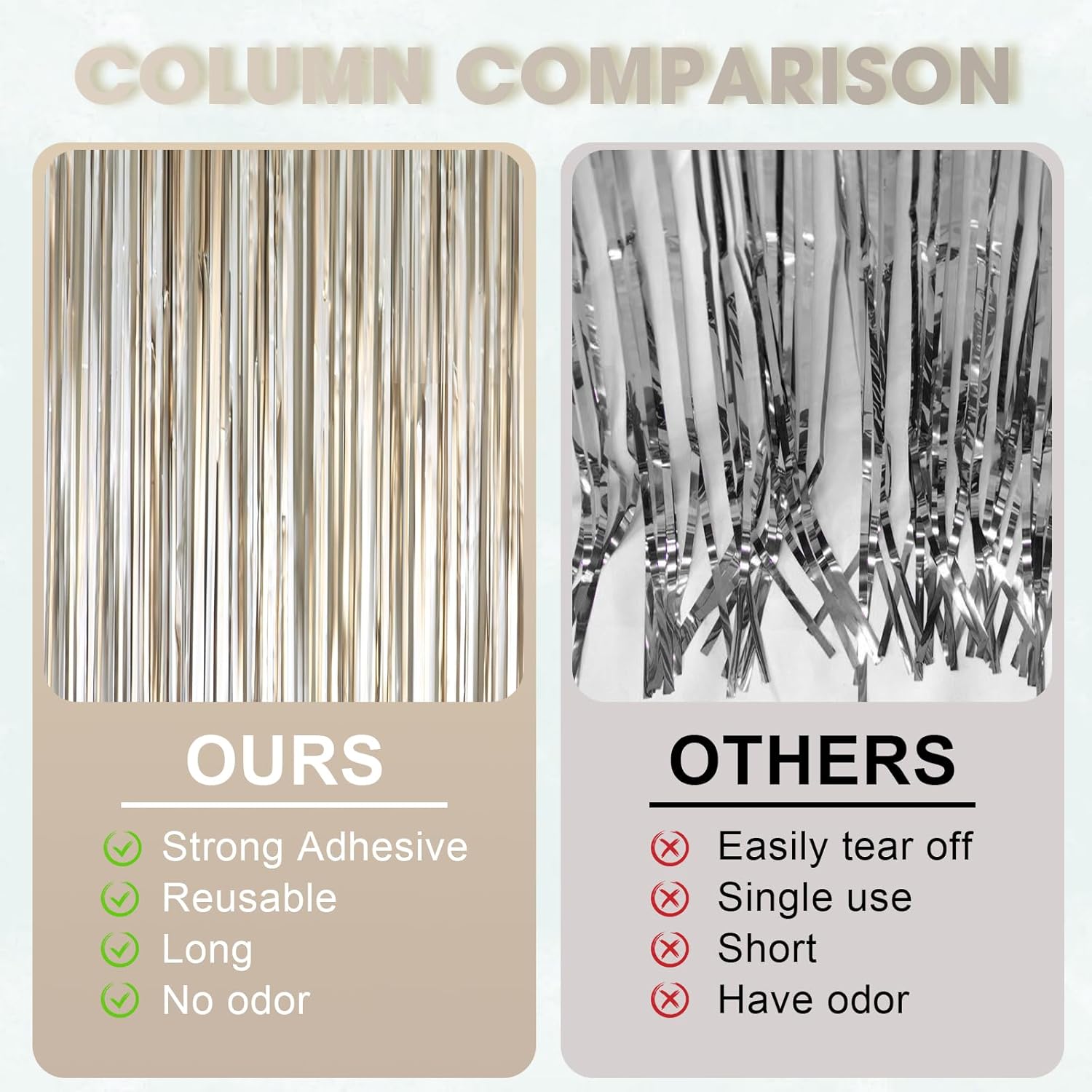 - Package Included: 3 packs of champagne foil fringe curtains, the size of the foil curtain is 3.3*8.2ft. It's long enough to fit any occasion