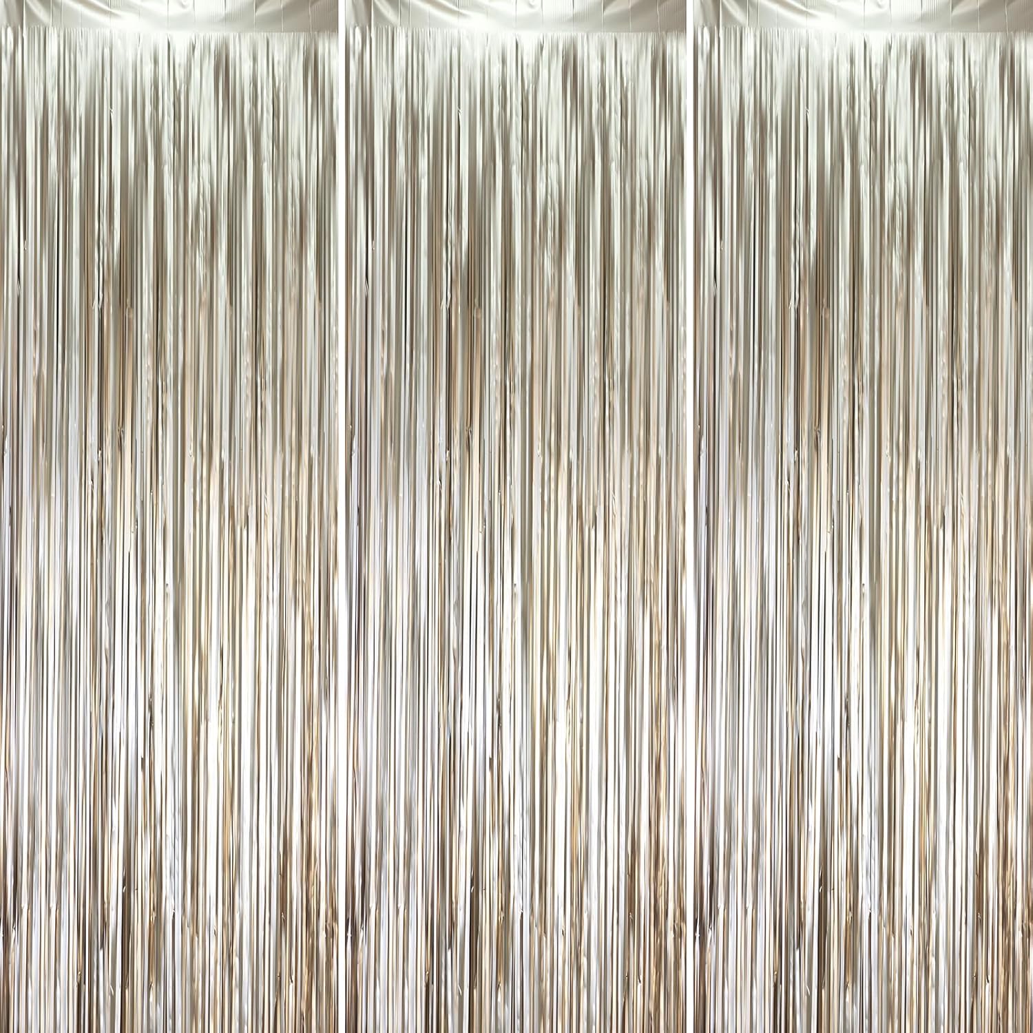 3 Pack 3.3 x 8.2 ft Matte Champagne Foil Fringe Backdrop Curtains, Gold Tinsel Streamers Party Decorations, Fringe Backdrop, Door Shimmer for Graduation, New Years Eve, Birthday Party