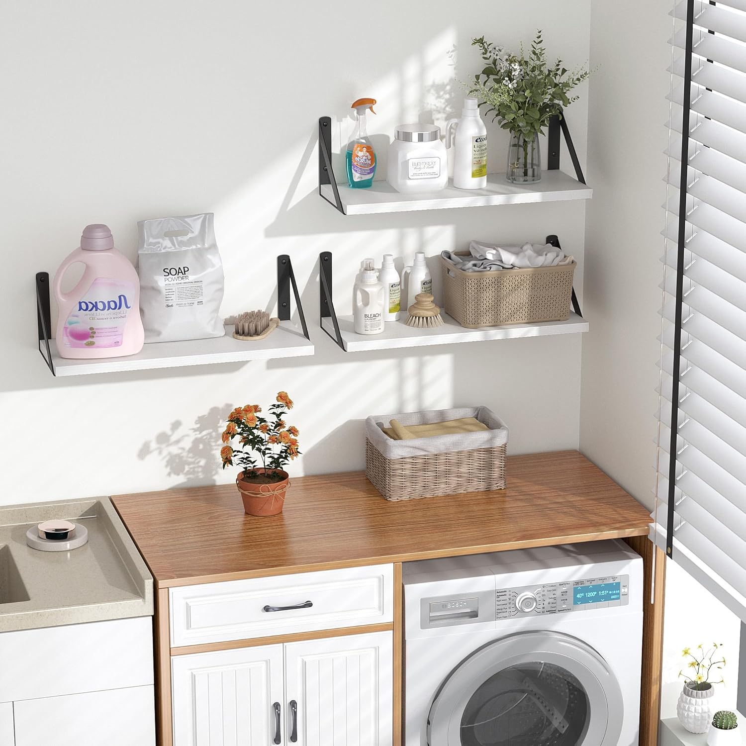 - 【MULTIFUNCTIONAL WALL SHELF】The floating shelves can turn a small area into an organized space, providing storage space for bedroom, bathroom, kitchen, easily placing greenery, books, crafts, spice jars, toiletries