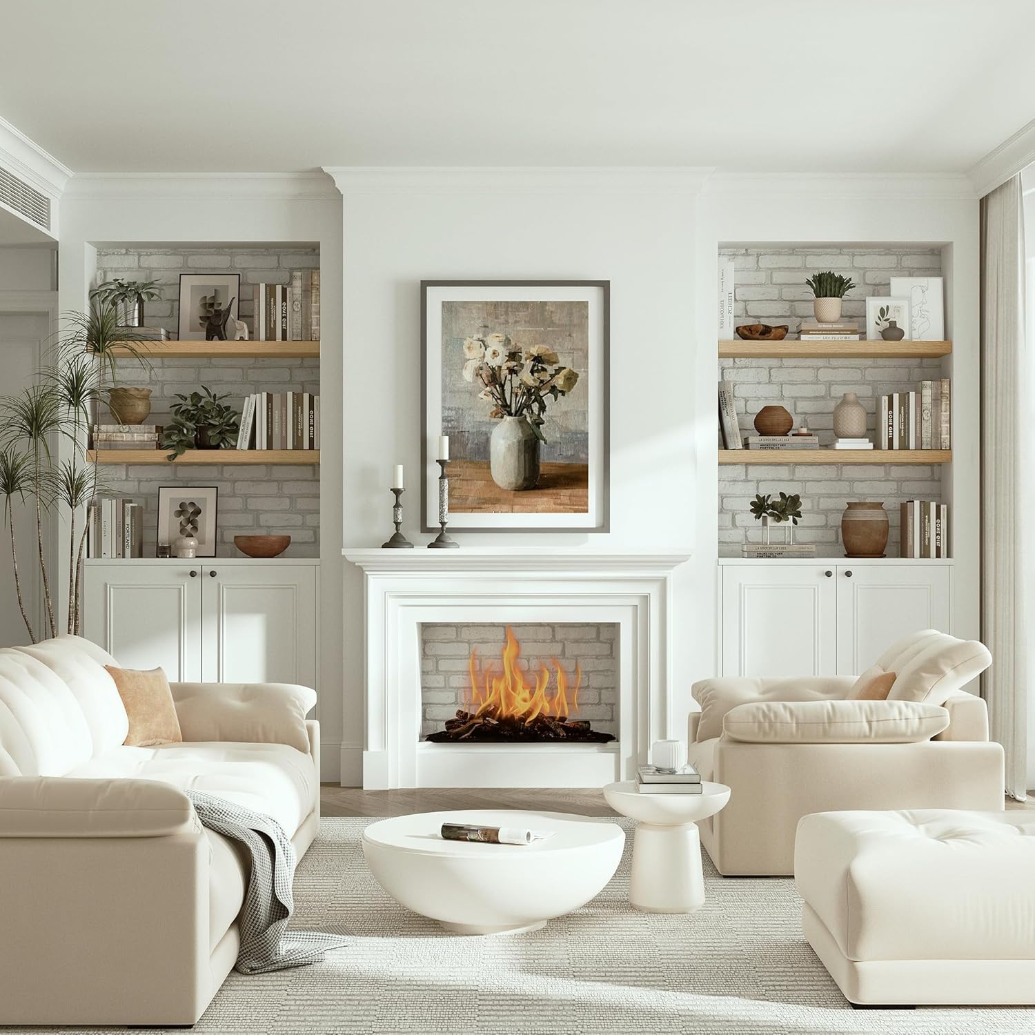 These wall shelves are both functional and stylish, giving my living room a fresh look.