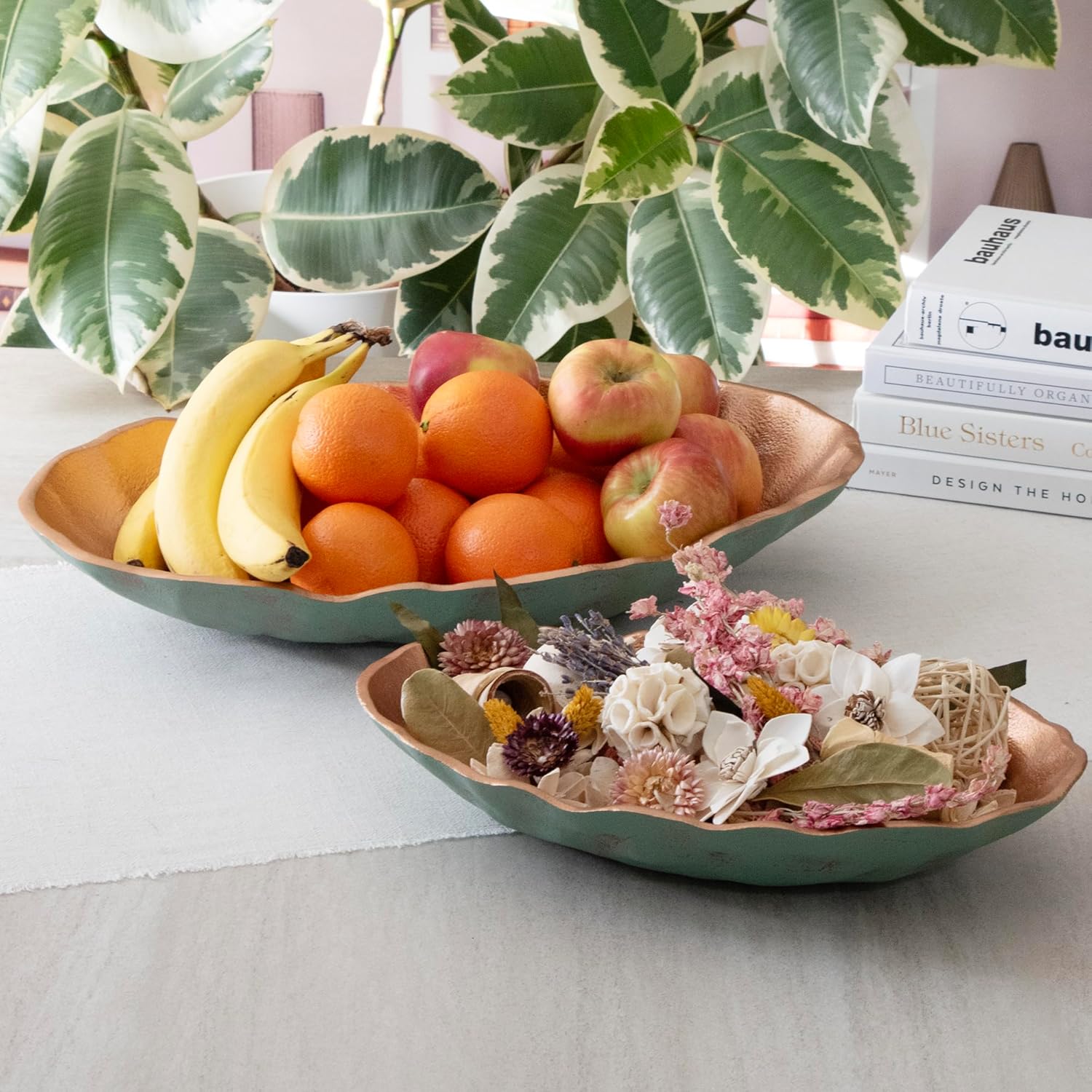 ANDALUCA Set of 2 Turquoise Copper Finish Metal Decorative Oval Bowls for Potpourri, Table Decor