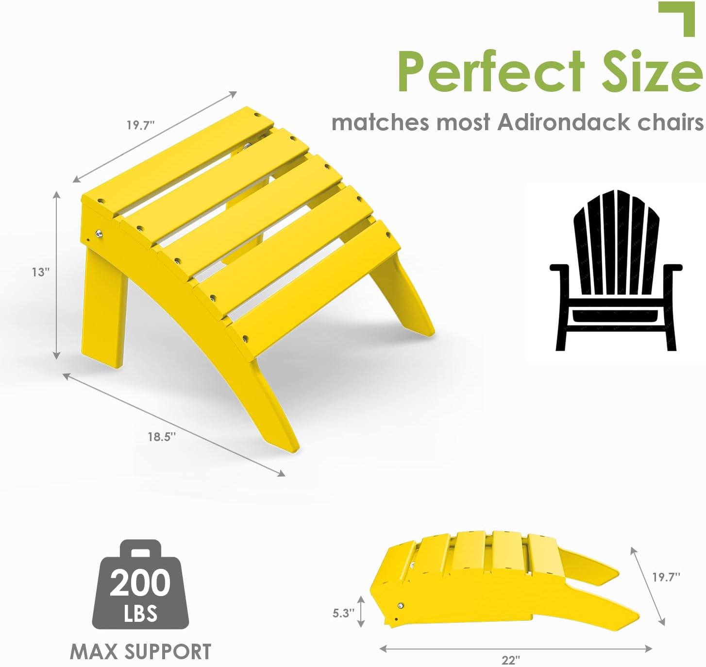 GREENVINES Adirondack-Ottoman | HDPE Plastic | Outdoor Footrest | All Weather | Foot Rest | Foot Stool | Yellow | for Adirondack Chair | for Patio Backyard Pool