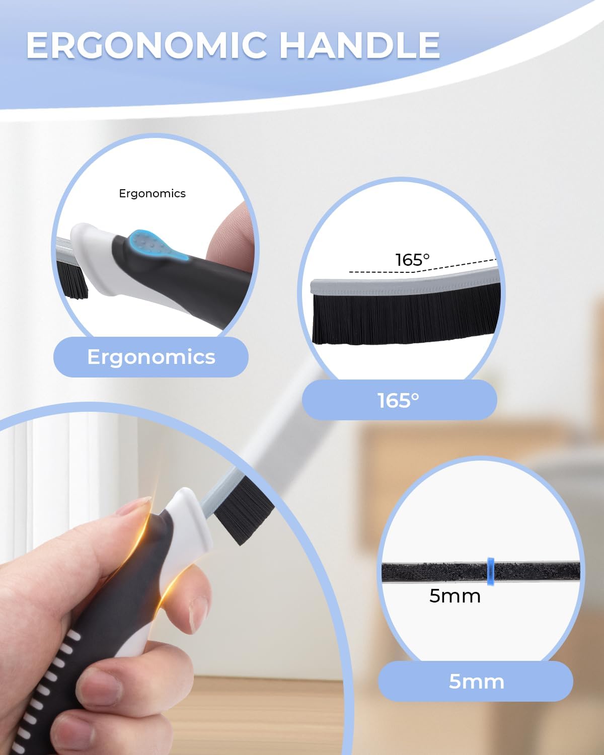 - Multi-purpose Brush:Crevice brush for cleaning a variety of surfaces, including faucet and bathtub grout, shower door grooves, toilet seat gaps, floor tile grout, sliding glass door tracks, door rail grooves, around bathtub, kitchen sink edges, household appliance surfaces and crevices (microwave, coffee maker, oven, washing machine, fan), Window rails, shutters, stoves, keyboards, bathtubs, vents, swimming pools, vehicles, furniture, boats, countertops, shower door frames, toilet tank baseboards, etc.