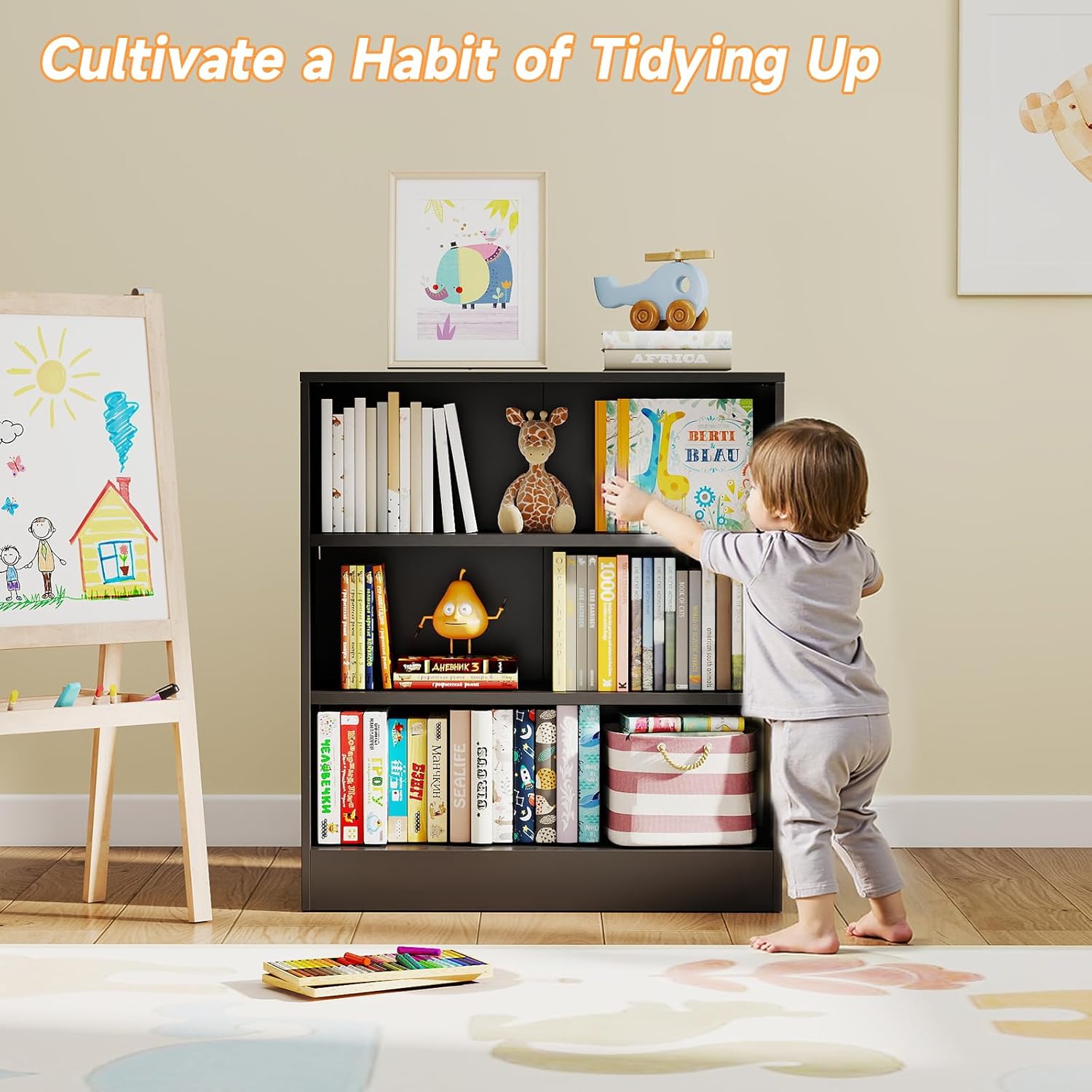 3-Tier Metal Open Shelf Bookcase, Bookcase with Adjustable Shelves, Floor Standing Book Shelf, Freestanding Display Storage Shelves, Curio Cabint Display Case for Small Places/Living Room/Corner