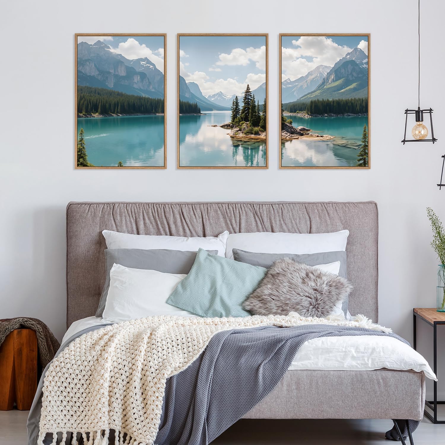 - Modern Nature Aesthetic: Add color to your home decor with this Mountain Lake Scenery Canvas Wall Art. Tranquil waters and turquoise mountains and forests echo each other in their own way, and the fusion of the two brings a modern and timeless appeal that evokes a sense of peace and natural beauty.