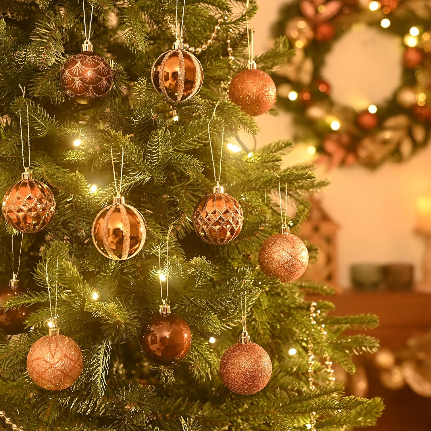 Valery Madelyn Christmas Ornaments Set, 30ct 2.36 Inches Bronze Copper Brown Gold Shatterproof Christmas Tree Decorations Ball Ornaments Bulk, Elegant Hanging Ornaments for Xmas Holiday Party Decor