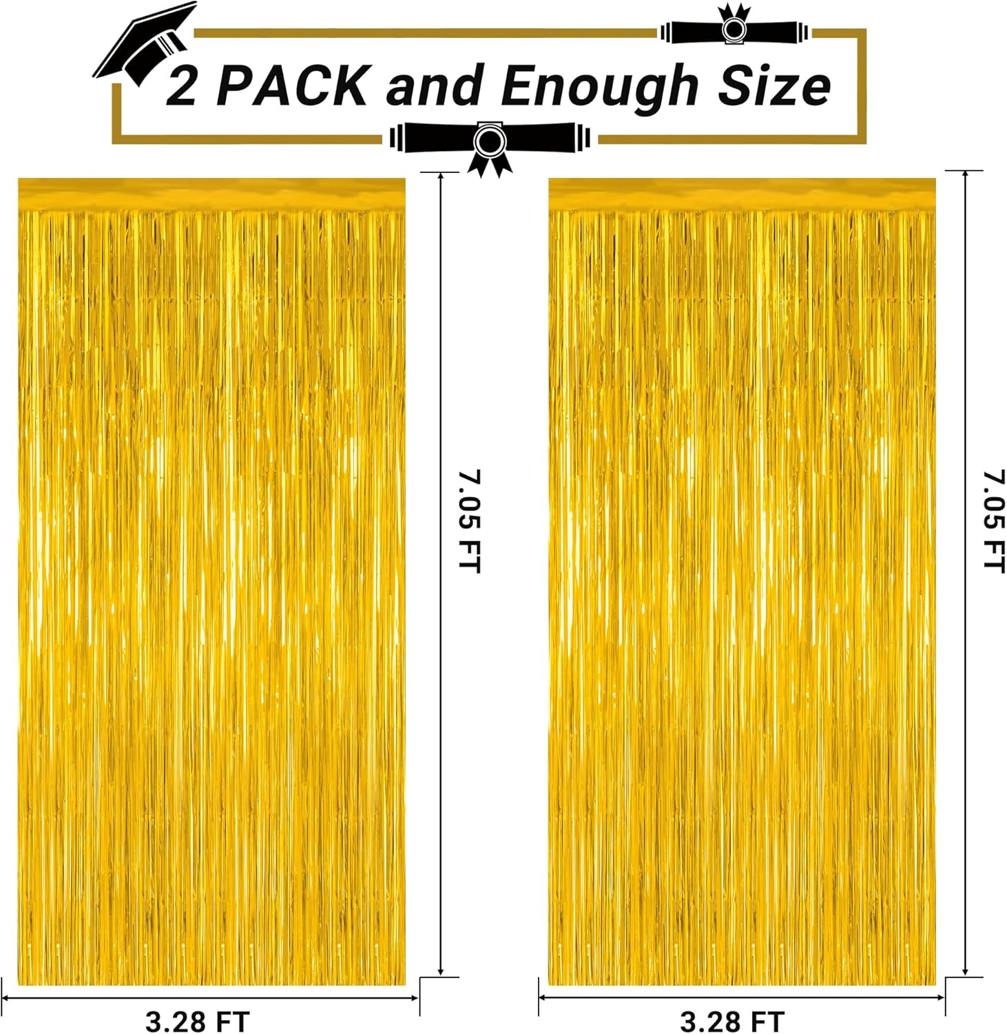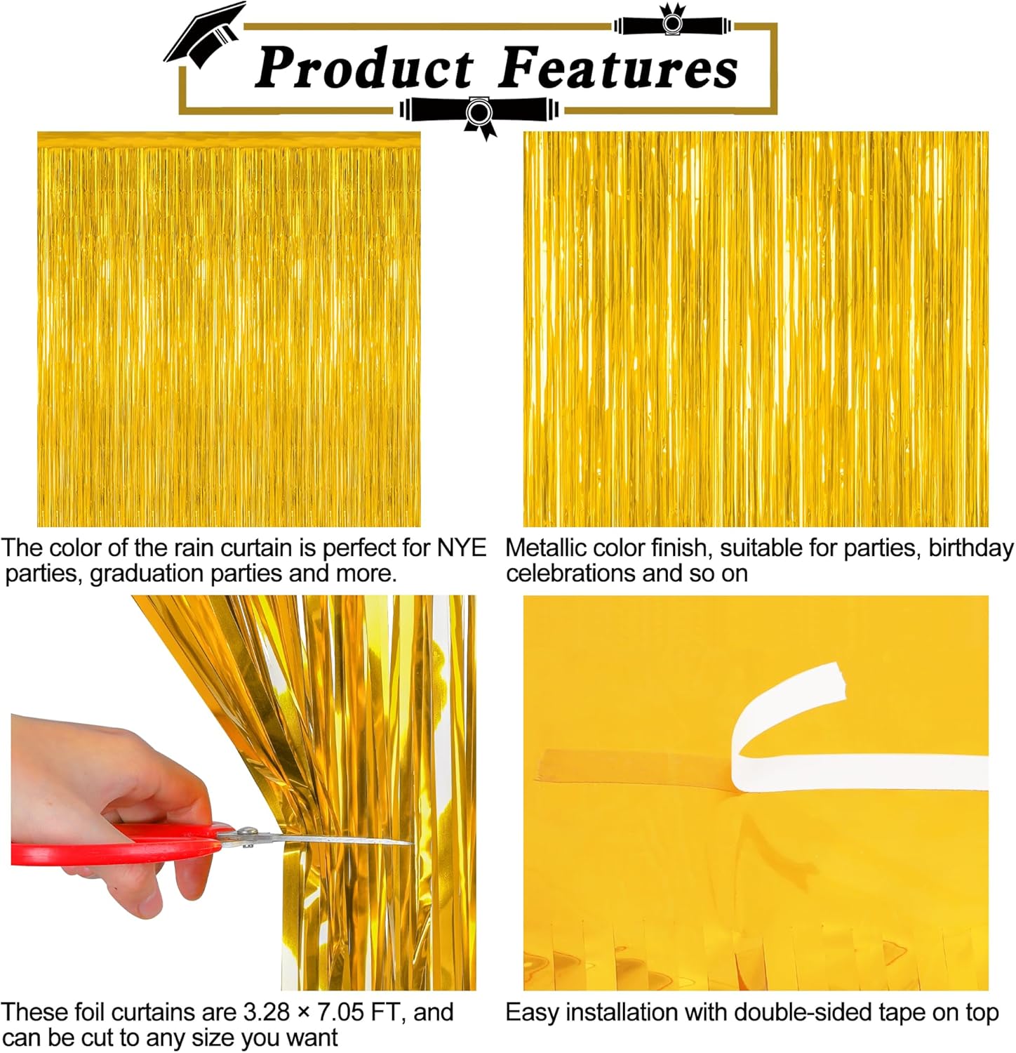 4 Pack 2025 Graduation Party Decorations, 3.28 x 7.05 Feet Gold Grad Curtains, Metallic Gold Backdrop Curtain Class of 2025 Backdrop Party Streamer, Congrad Backdrop Grad Decor 2025