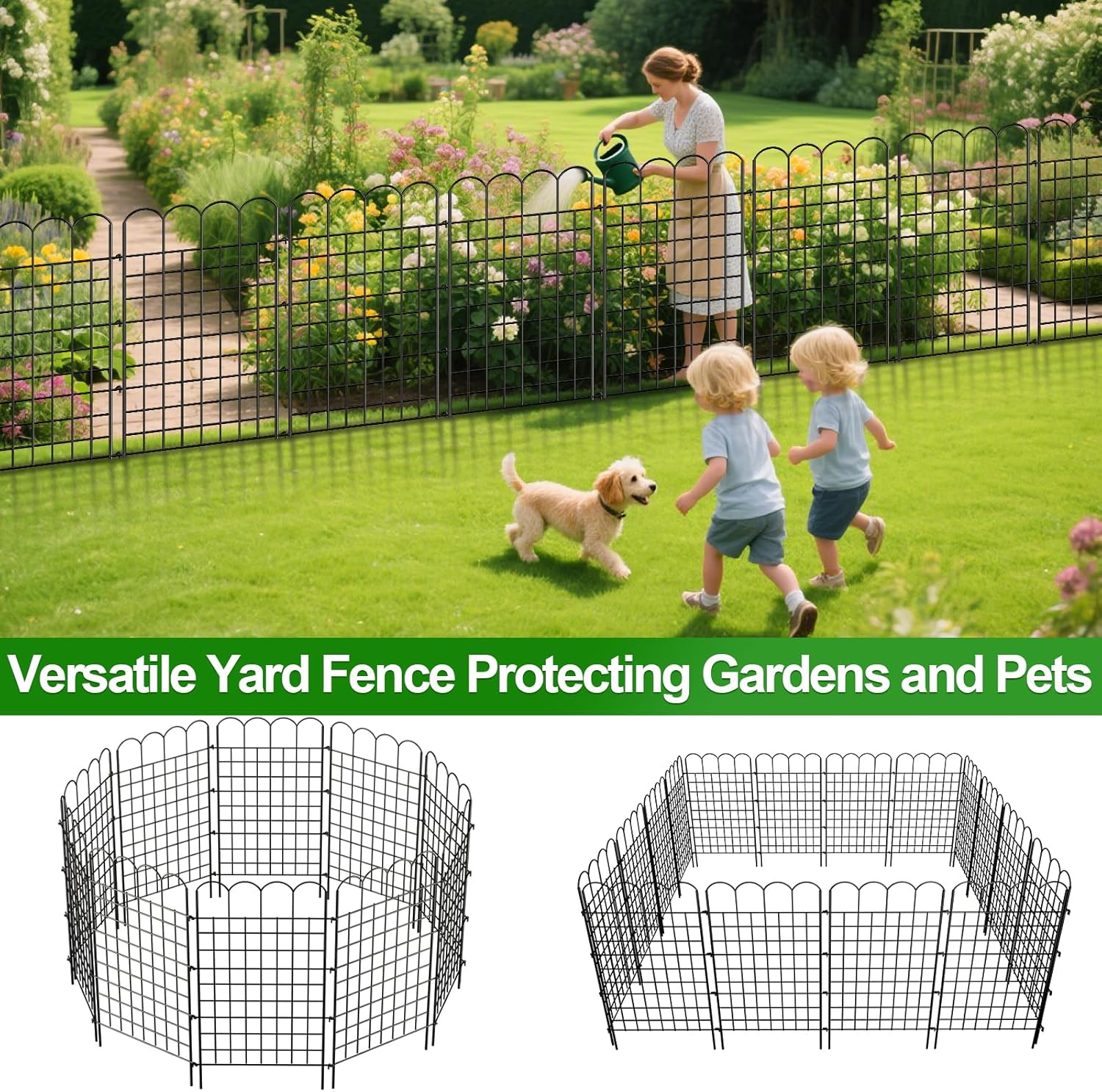 - Multipurpose Decorative Fence: The metal dog fence panels features a classic black design that perfectly complements any garden or patio style. This Patio Fence Can be Used as a Small Garden Fence or an Animal Barrier Fence. It Is Very suitable for Garden Borders, Patio Fencing, Animal Barriers, Dog Fencing, Rabbit Fencing, Flower Border and so on