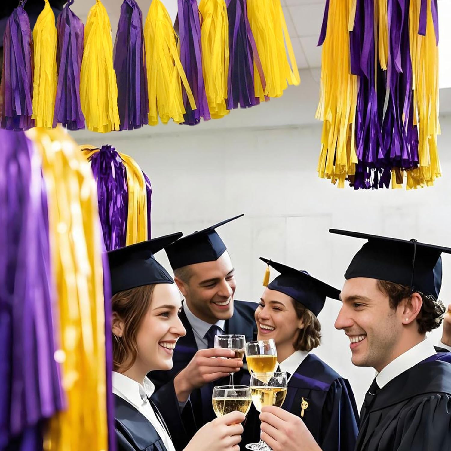 Purple Yellow Paper Tassel, 20 Pack, Party Decorations for Birthday, Baby Shower, Sprot Game,Graduation