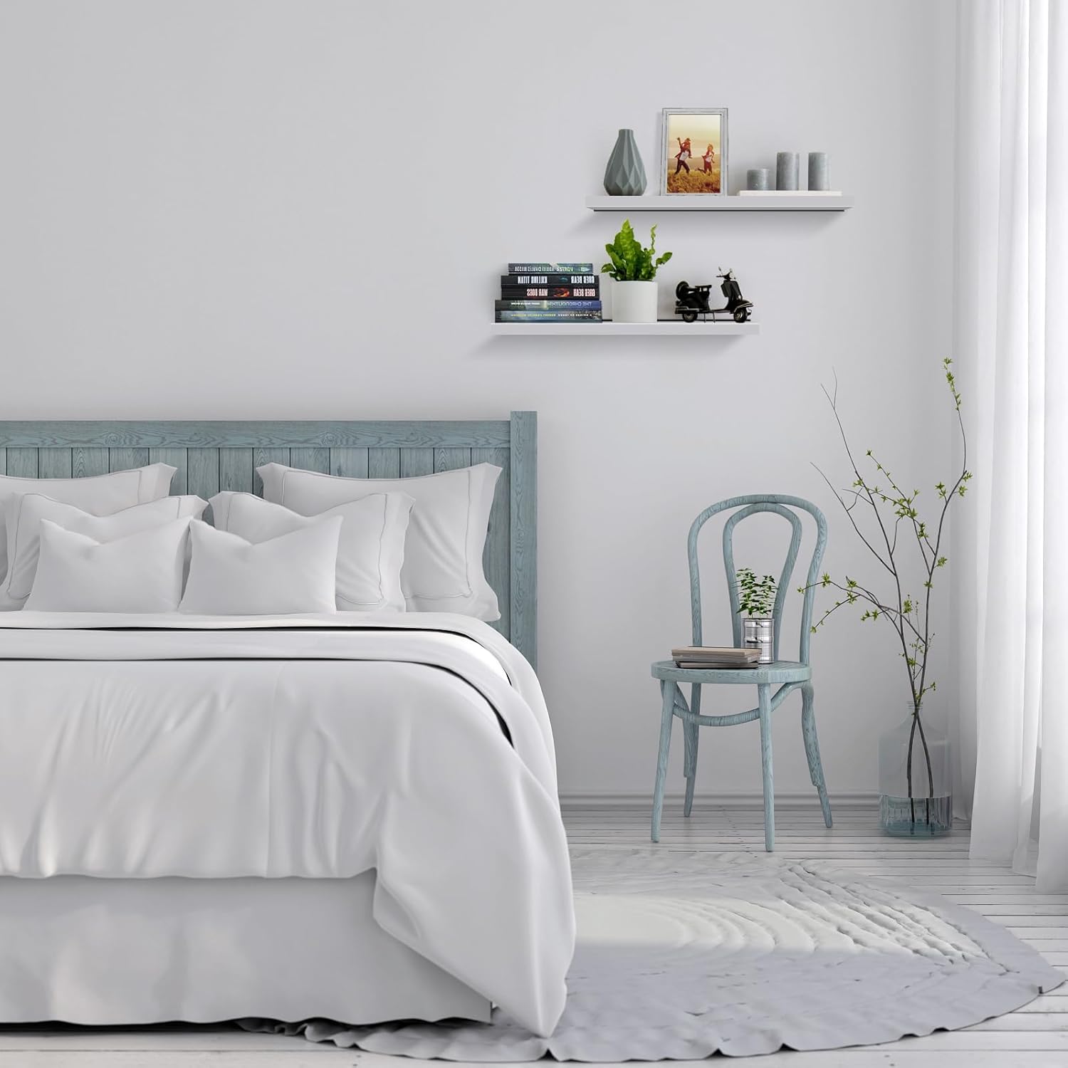 Meangood Floating Shelves White 17 inch Wall Mounted Natural Bamboo Wood Wall Storage Shelves for Bedroom,Living Room,Bathroom, Kitchen(Set of 2)