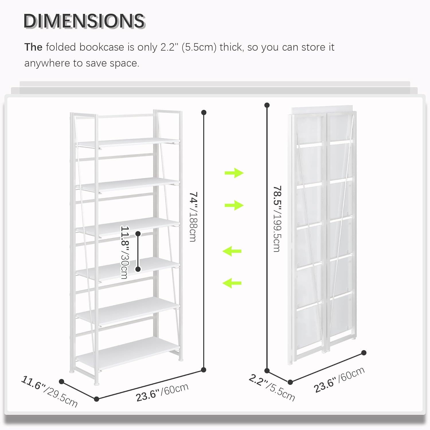 - 【Storage shelf folding sized】23.62x2.2x78.54 inches (60x5.5x199.5cm).