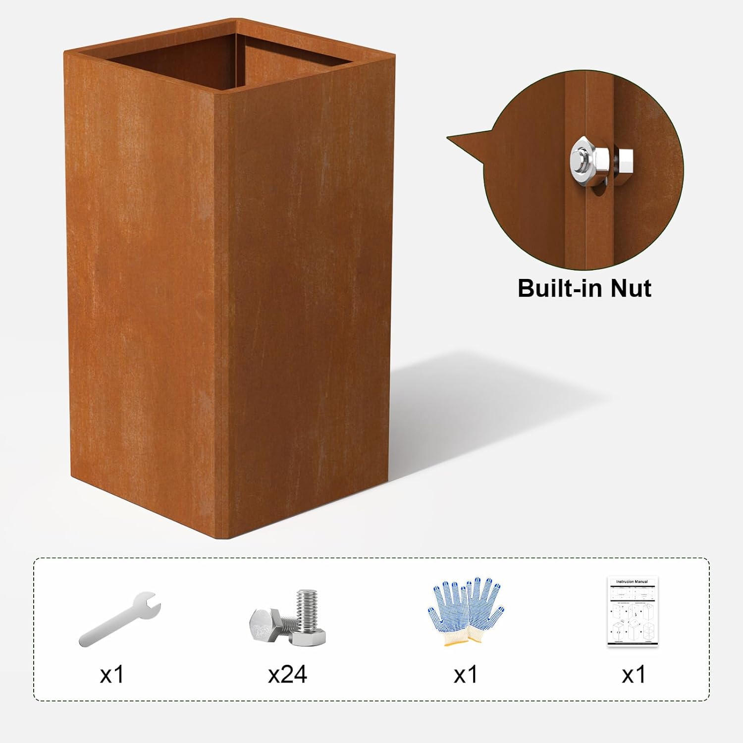 - 🧰 Effortless Tall Square Planter Assembly: Full kit (24 screws/wrench/gloves/manual) + 45° angle splicing. Wrapped edges prevent cuts during setup—DIY-friendly heavy-duty build for elevated designs!