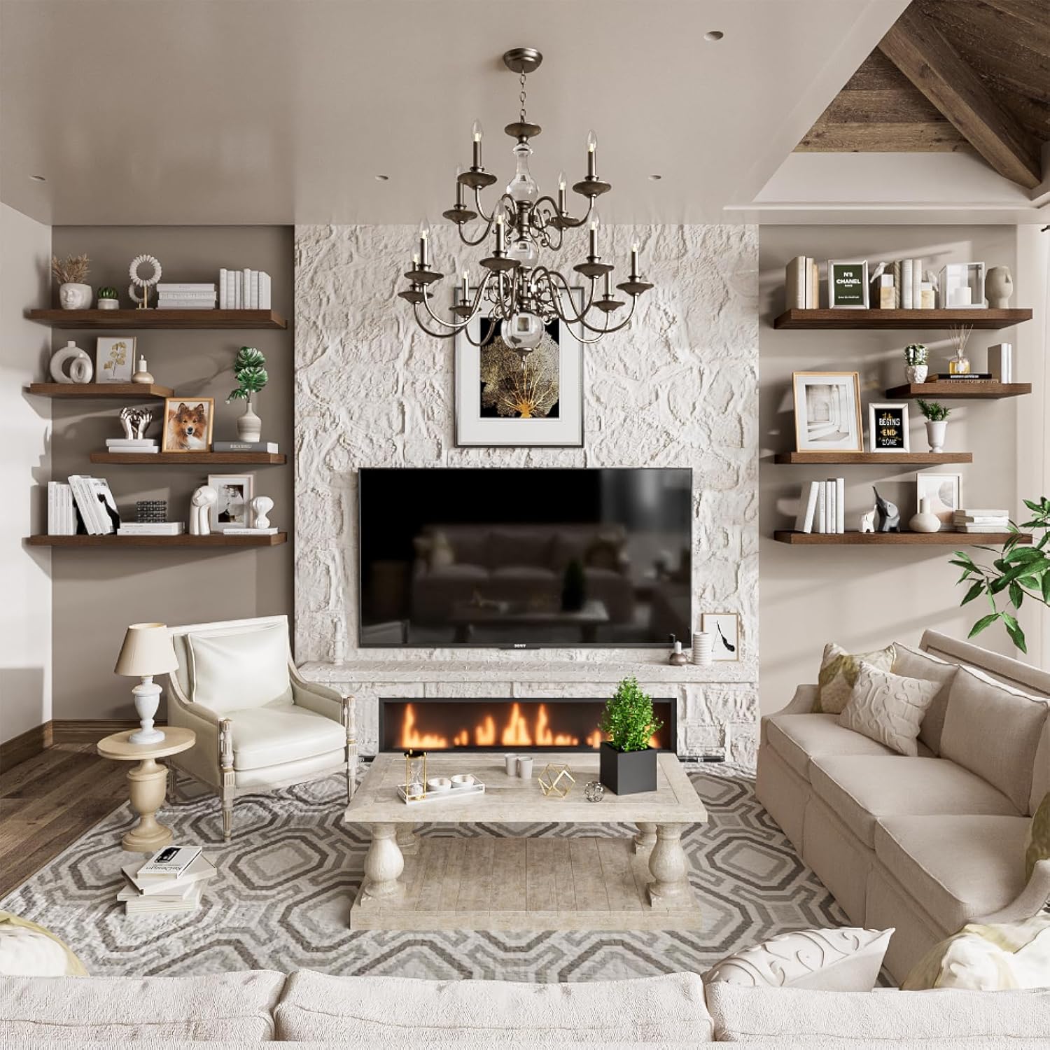 These wall shelves are both functional and stylish, giving my living room a fresh look.