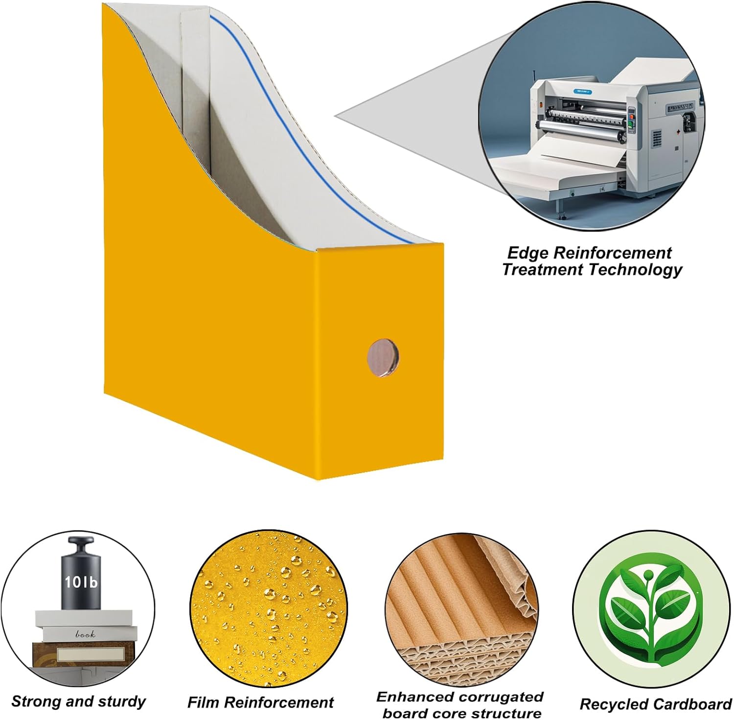 Cardboard Magazine Holder (24 Pack), Sturdy Book Bins for Classroom, Vertical File Folder Organizer, 10.6'' 10.2'' 3.5'' Inch Magazine Rack (Yellow, 24 Pack)