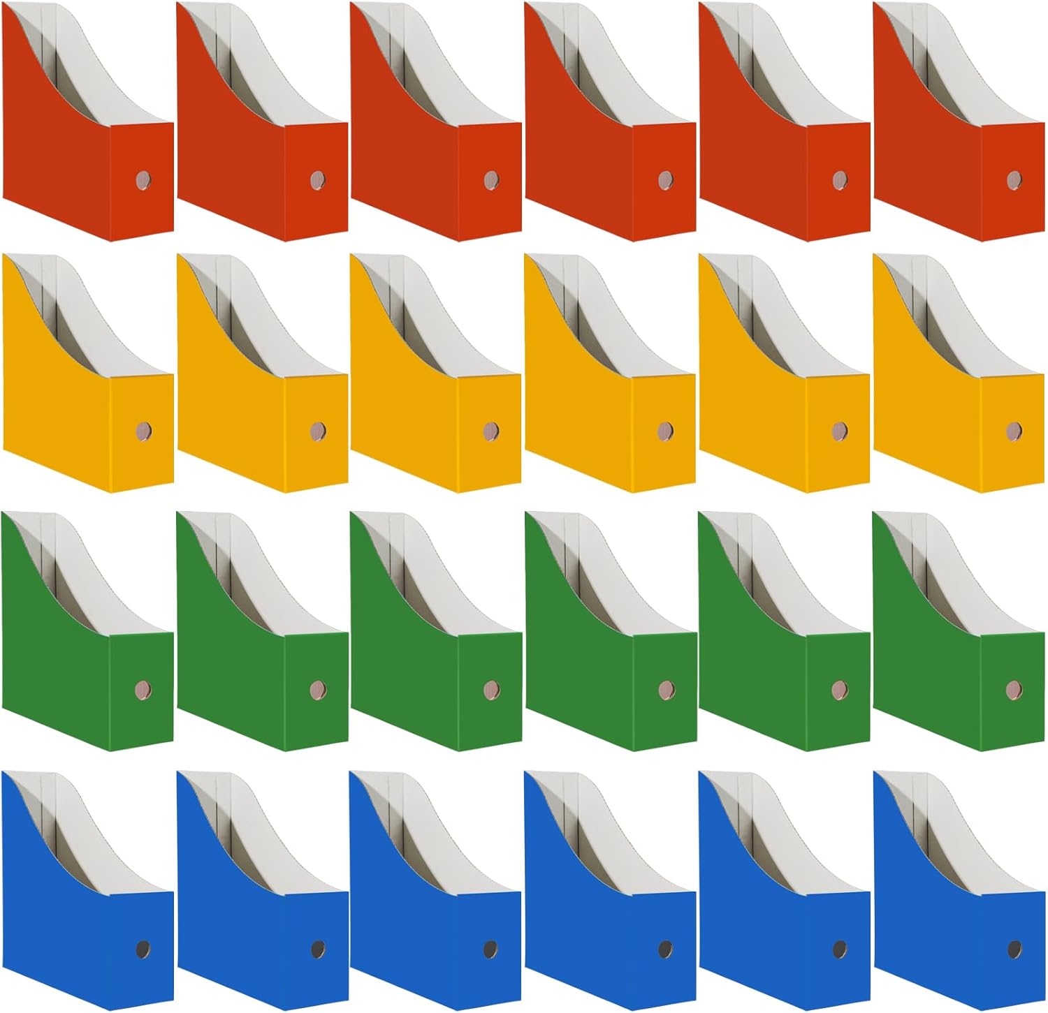 Cardboard Magazine Holder (24 Pack), Sturdy Book Bins for Classroom, Vertical File Folder Organizer, 10.6'' 10.2'' 3.5'' Inch Magazine Rack (Multi-Color, 24 Pack)