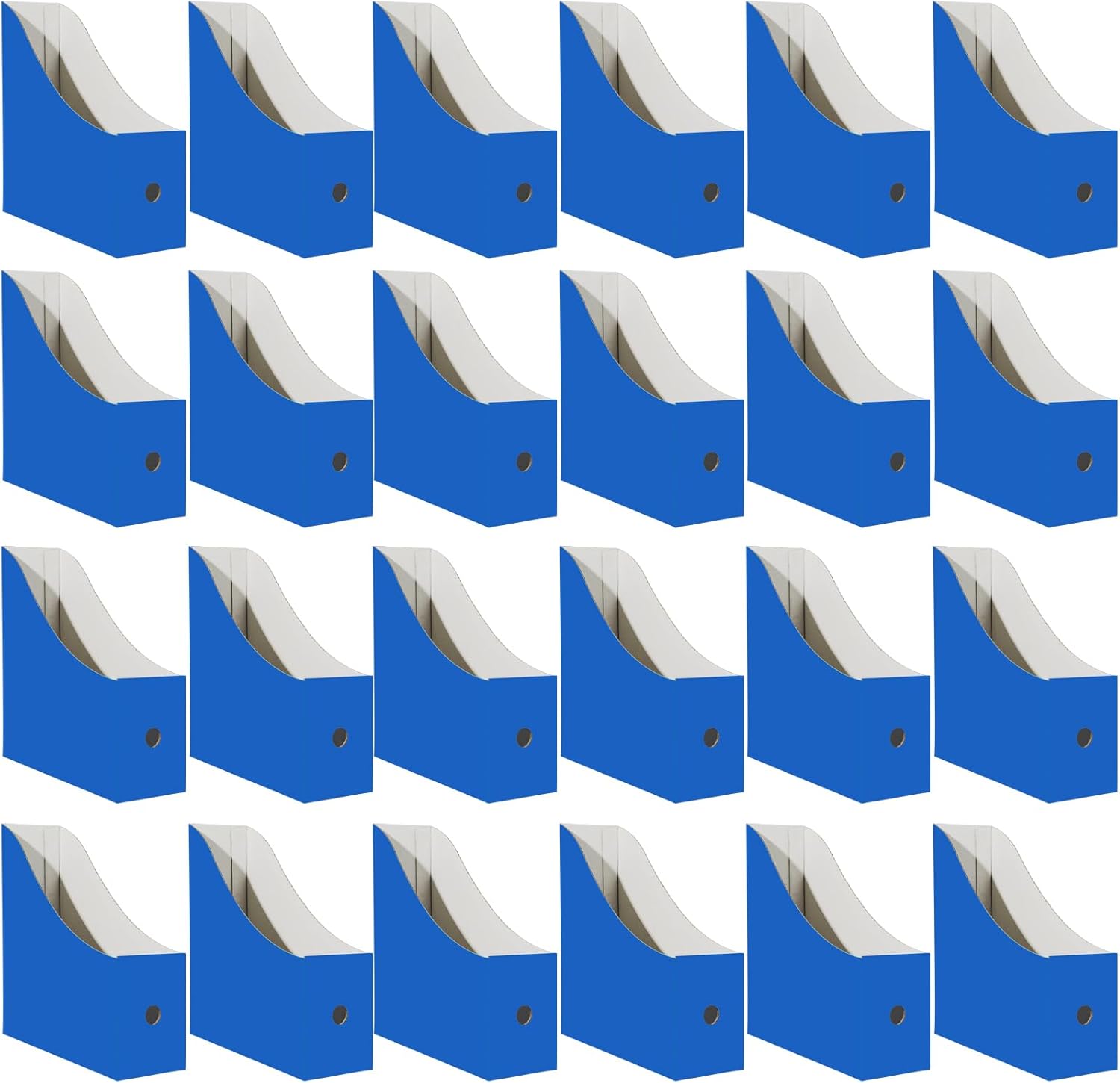 24 Pack Cardboard Magazine File Holder for Desktop ,Blue Book Bins for Classroom Library, Office or Home, Vertical Paper Boxes for Storage with Label(10.6" H x 10.2" L x 3.5" W in)