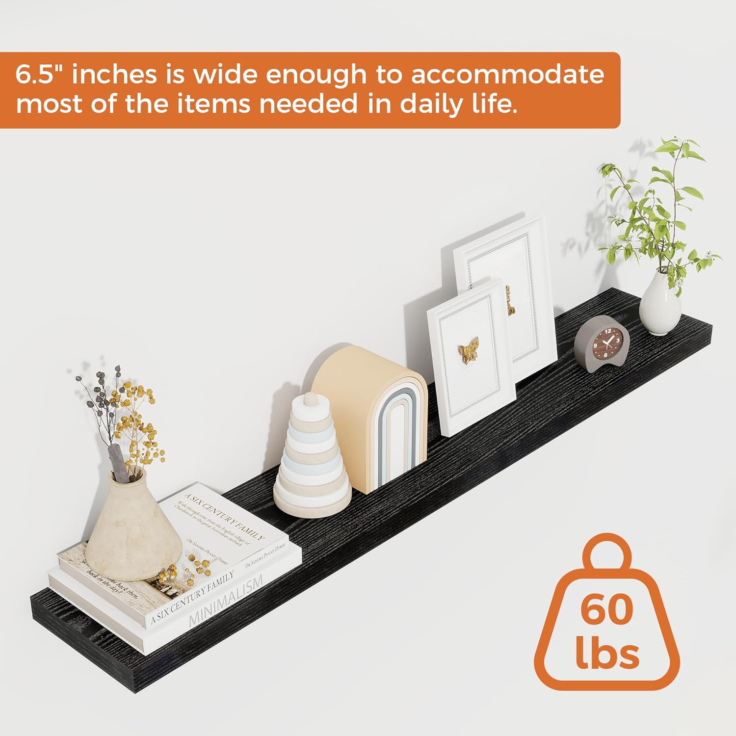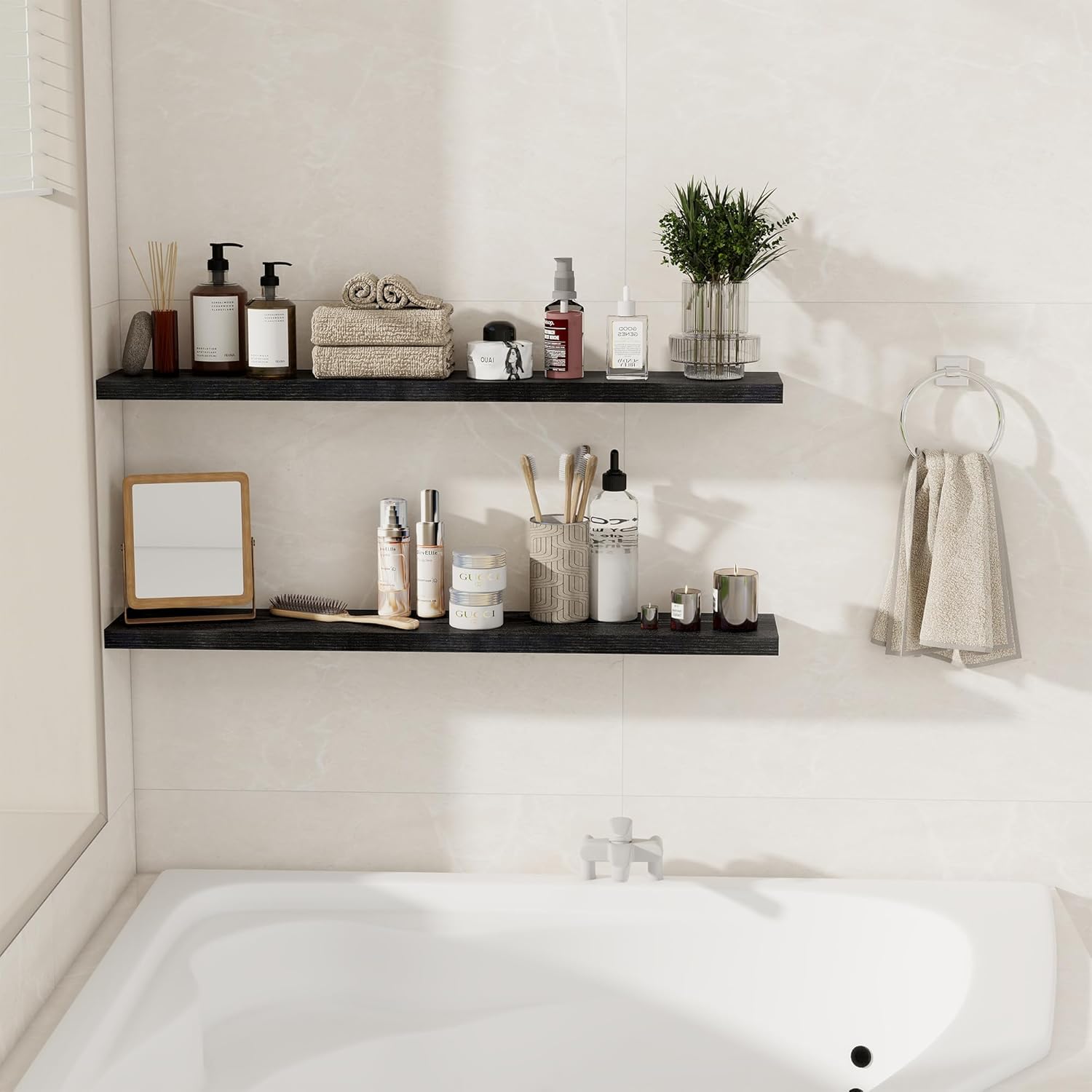 Floating Shelves for Wall, 40 Inch Floating Shelves for Home Decor, Wall Mounted Rustic Wood Shelves, Bathroom, Hanging Deep Shelf for Bedroom, Living Room, Kitchen (Black, Set of 2)