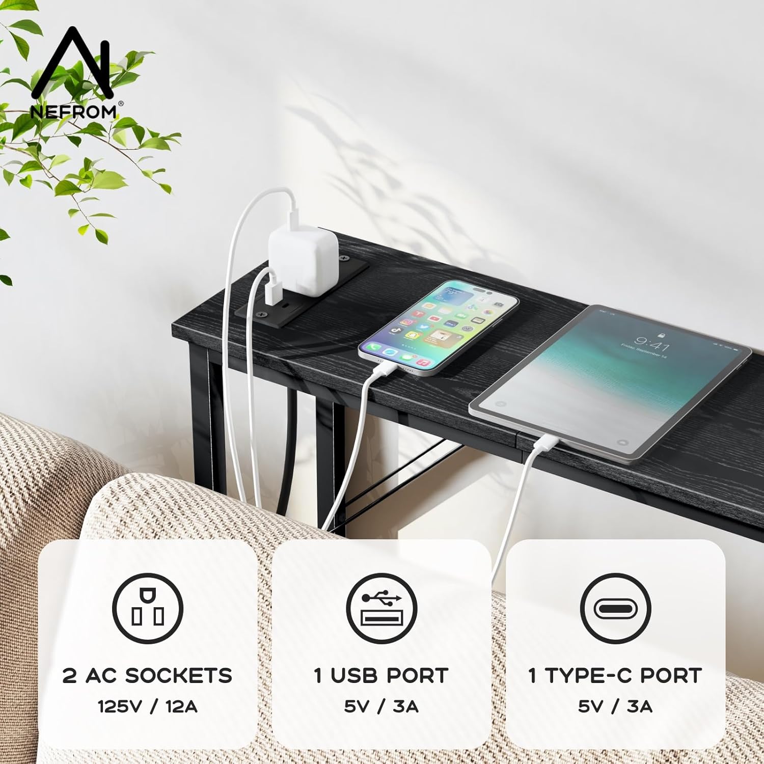 - 【CONSOLE TABLE WITH FAST-CHARGING STATION】---This size 7.9"D x 47.2"W x 31.5"H sofa table is equipped with 2 AC, 1 USB + 1 TYPE-C(5V 3A ) fast-charging ports, the power cord is 5 feet long, convenient to charge your mobile phone, computer, ipad.