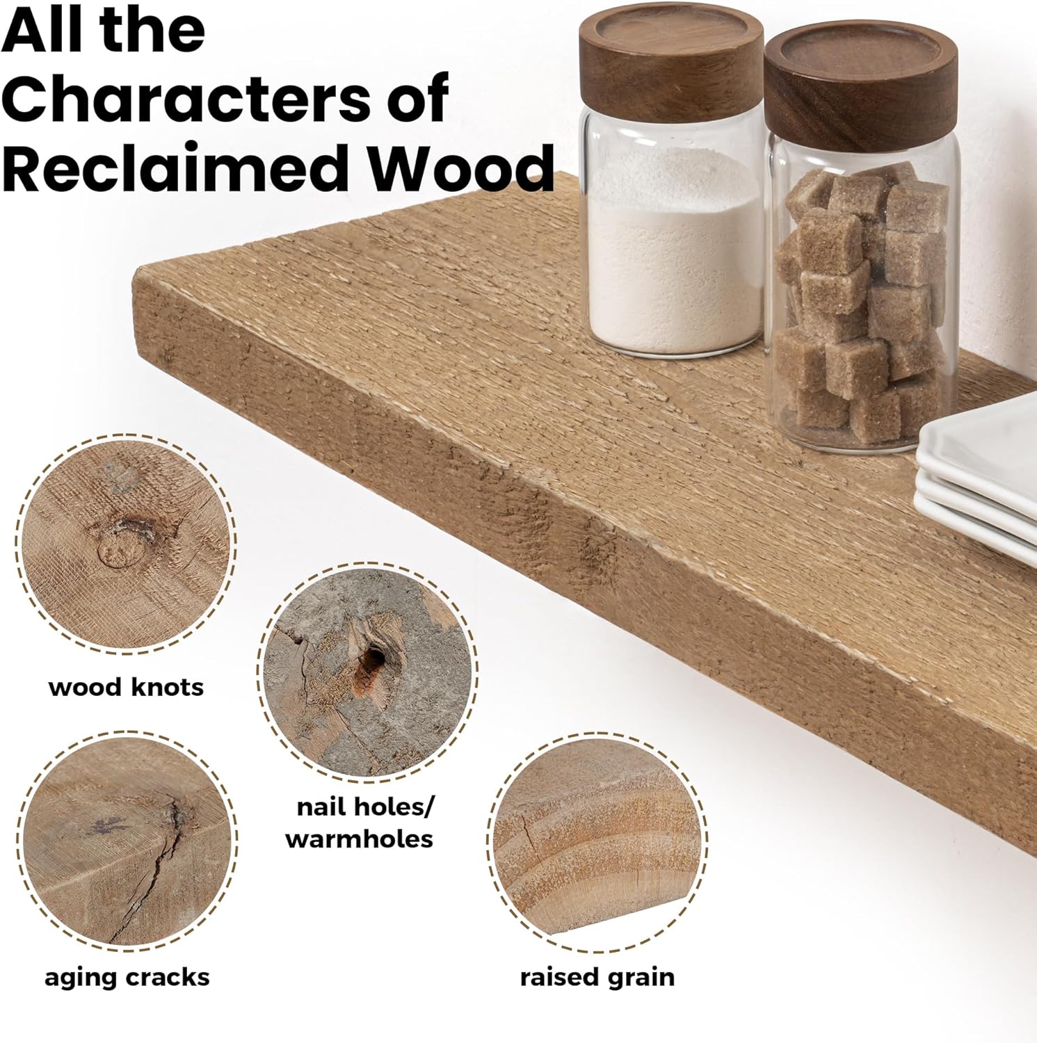 Floating Shelves - 8" Deep Rustic Reclaimed Barnwood Wall Hanging Shelves with Invisible Heavy-Duty Metal Bracket - Wall Mounted - Farmhouse Style - 48 inches, Distressed Natural