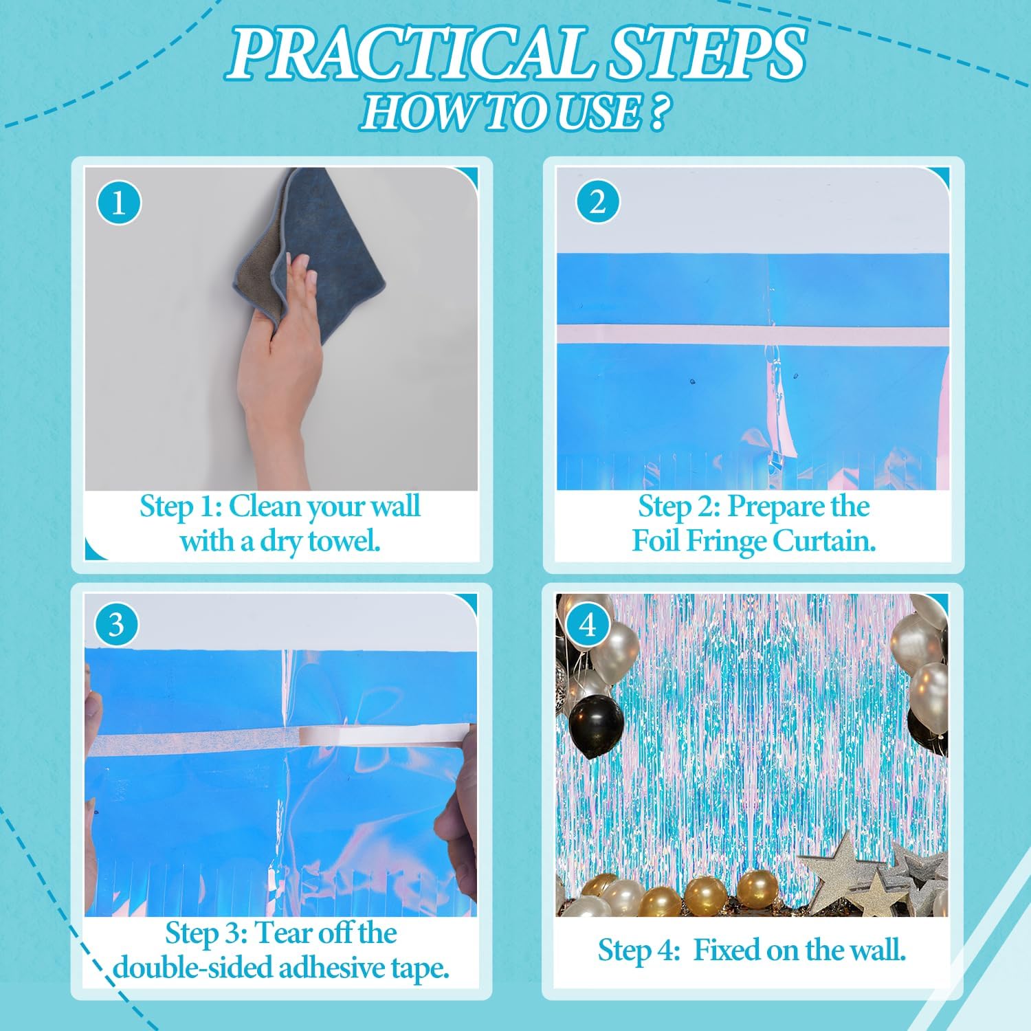- 【Easy and Convenient Installation】These foil fringe curtains are easy to install and can be quickly hung on smooth surfaces using the included double-sided adhesive tape. No extra tools or materials required.