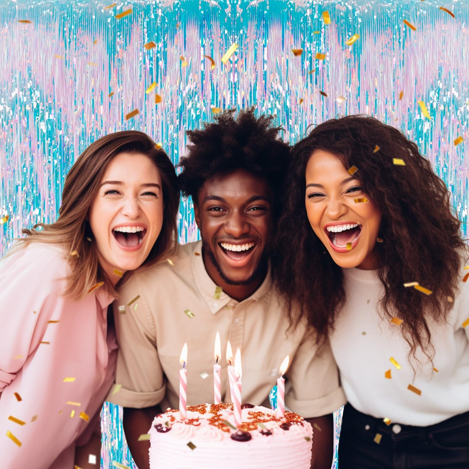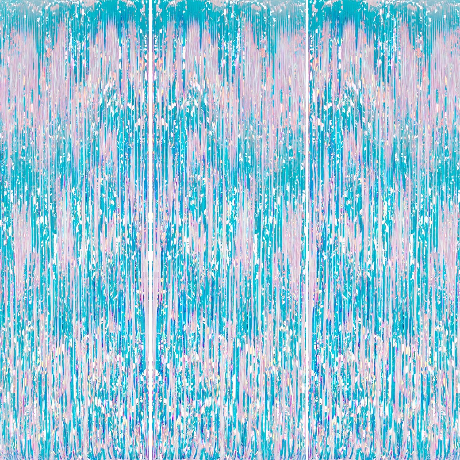3 Pack Foil Fringe Backdrop - Iridescent Shiny Tinsel Curtains for Party Decoration/Photo Booth Props - 3.3x8.2 FT Metallic Foil Backdrop for Birthday, Wedding, Graduation, Christmas.