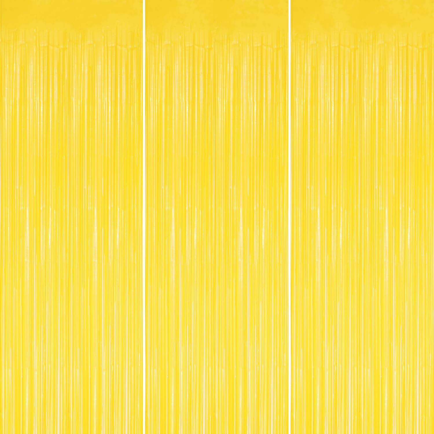 3 Pack Foil Fringe Backdrop - Pastel Yellow Shiny Tinsel Curtains for Party Decoration/Photo Booth Props - 3.3x8.2 FT Metallic Foil Backdrop for Birthday, Wedding, Graduation, Christmas.