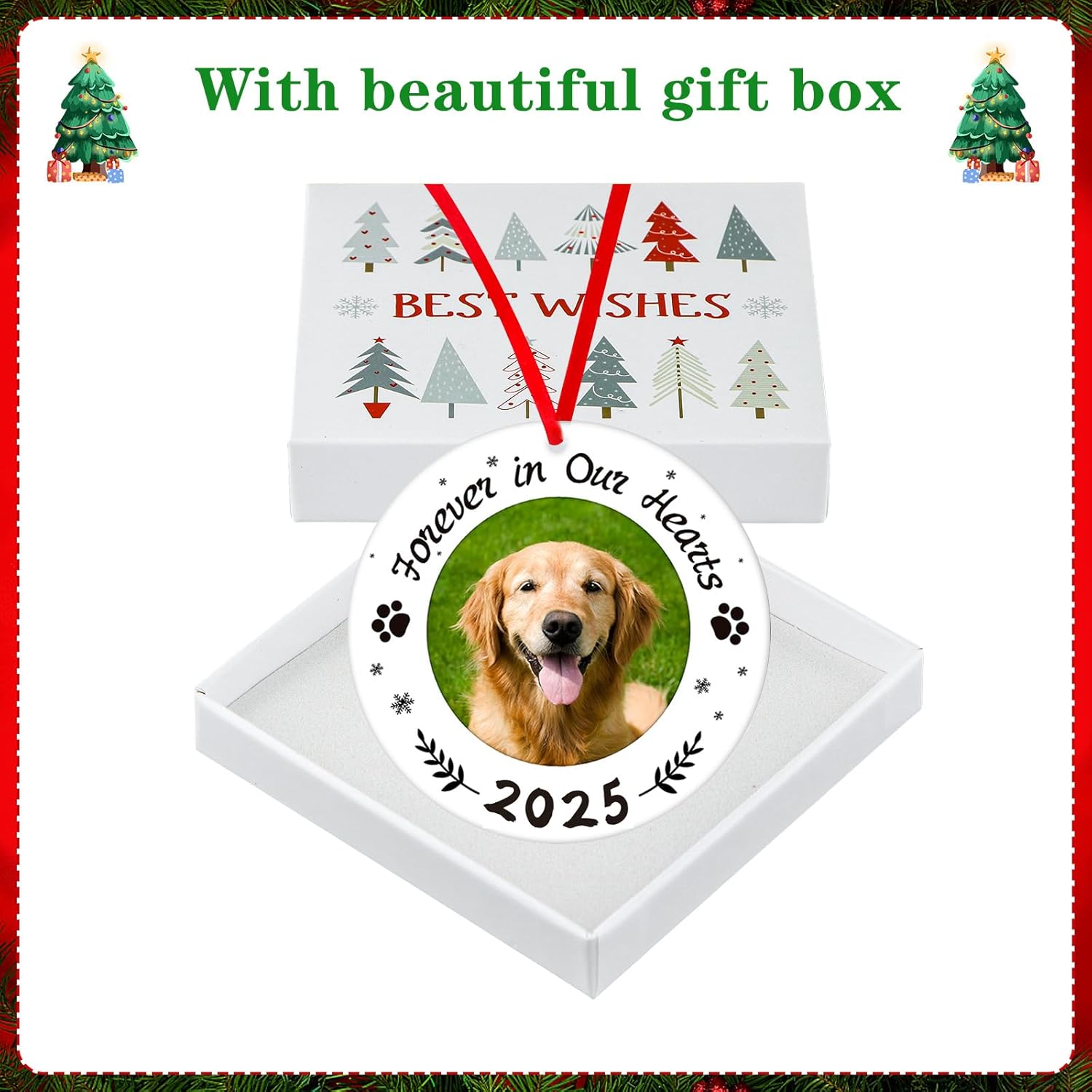- 【Picture Frame Dog Memorial Christmas Ornaments 2025】: This picture frame ornament features the heartwarming message "Forever in our hearts", great picture frame dog pet memorial ornaments for christmas tree decorations.