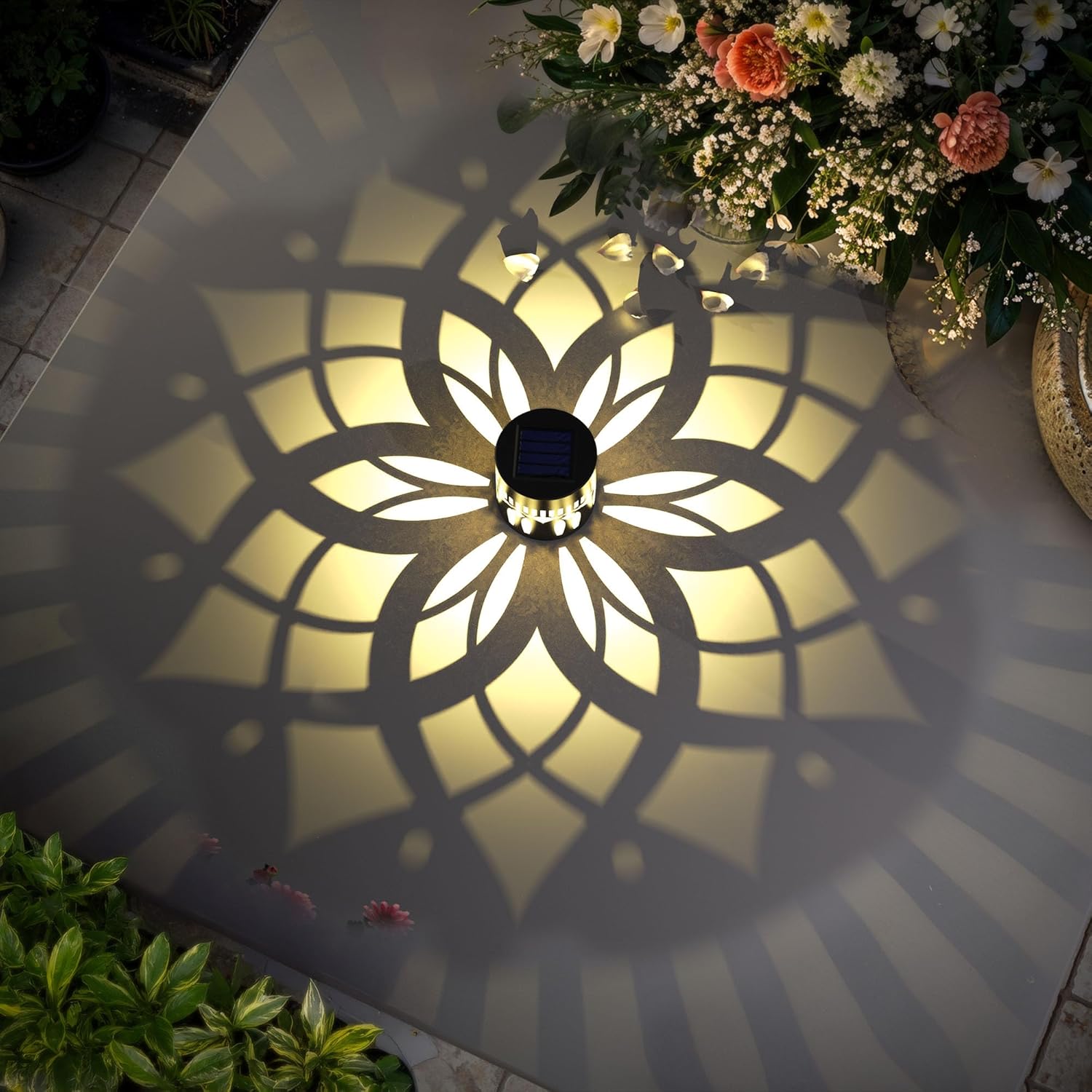 2 Pack Solar Fence Lights Metal Solar Powered Outdoor Wall Deck Step Lights Mandala Theme Waterproof Fence Light for Garden Post Patio Backyard Yard Decor, Gardening Gifts for Women Mom Grandma