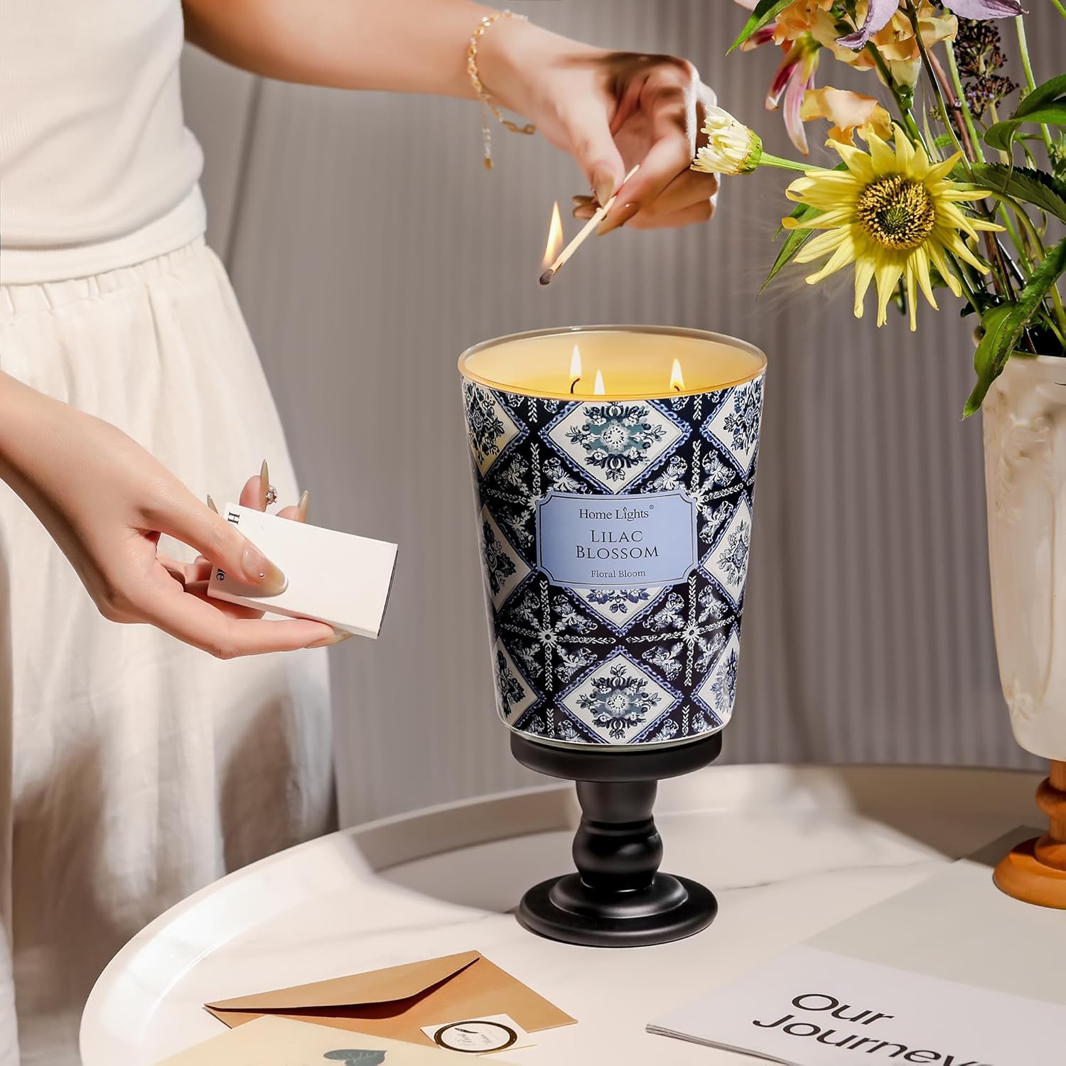 HomeLights Lilac Blossom Scented Candles | 34oz Soy Candles Bohemian Natural Textures 3-Wick Large Candle Jars | Ideal Candle Gifts for Events, Home Decor Stress, Relief & Relaxation
