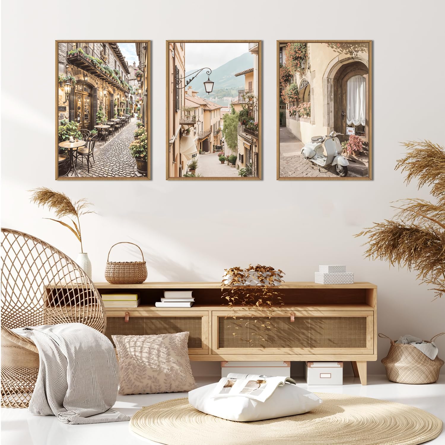 - 【Foreign Scenery Wall Art】 The size of the European countryside landscape framed canvas wall art set is: 16x24 inch x3 pcs (40x60 cm x3 pcs). The modern European architecture prints artwork uses high-quality environmentally friendly ink and high-quality canvas, and employs the industry's top printers for layered spraying. The colors are delicate and the transition is natural, bringing you visual enjoyment.