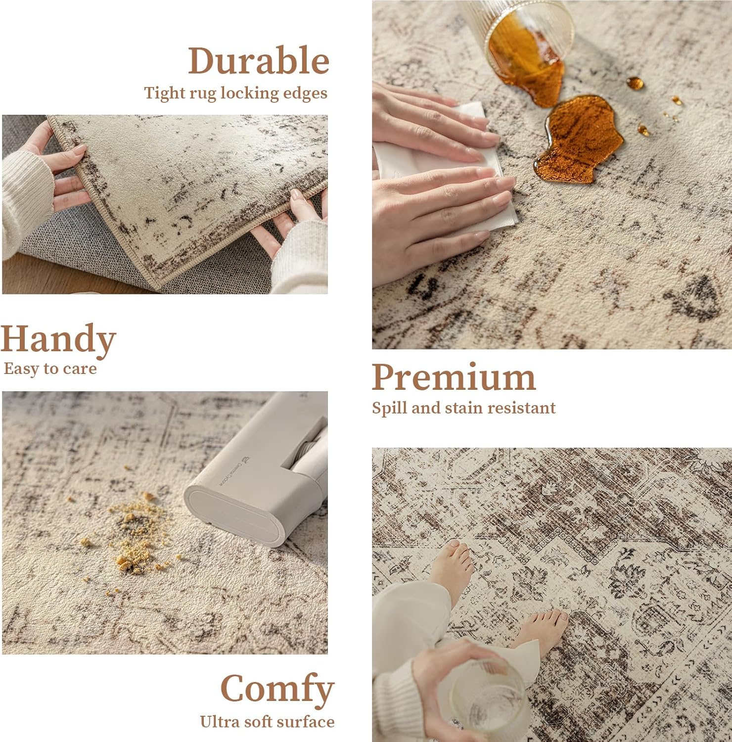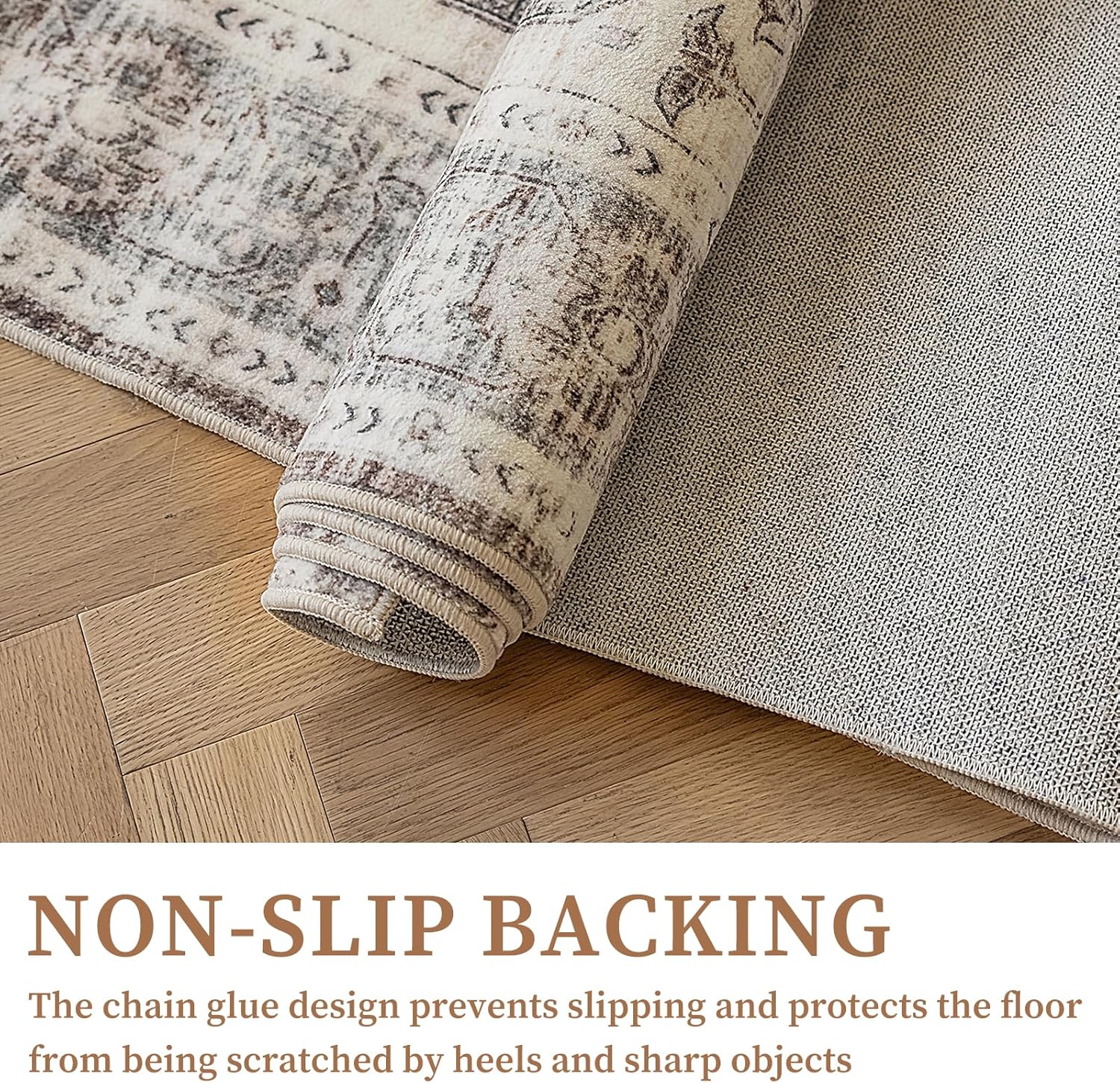 - Non-Slip Backing: This indoor rug features a slip-resistant backing, providing added safety for children and pets during daily activities. No additional padding is required to enhance thickness or softness. For optimal performance, always ensure the underside of the rug remains dry