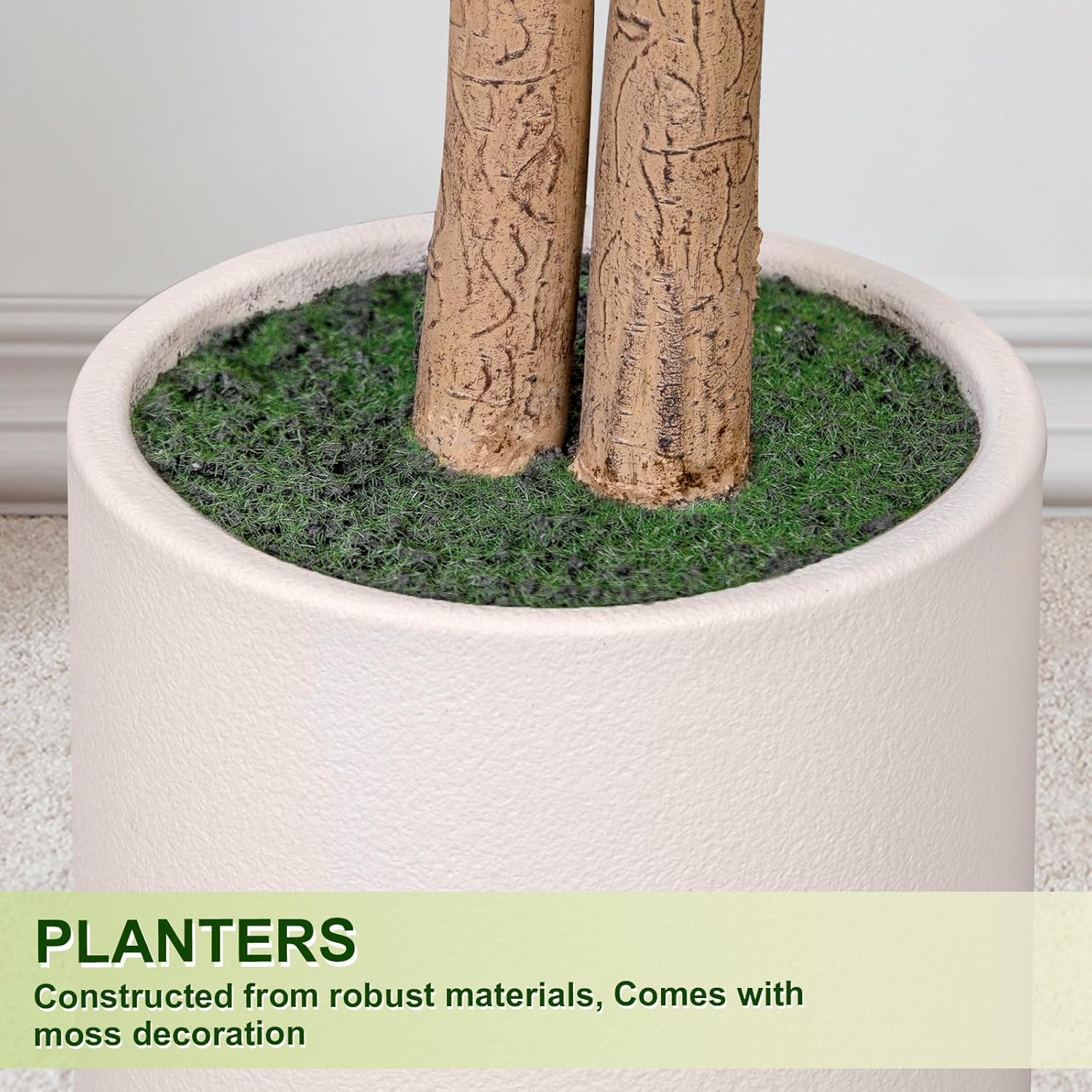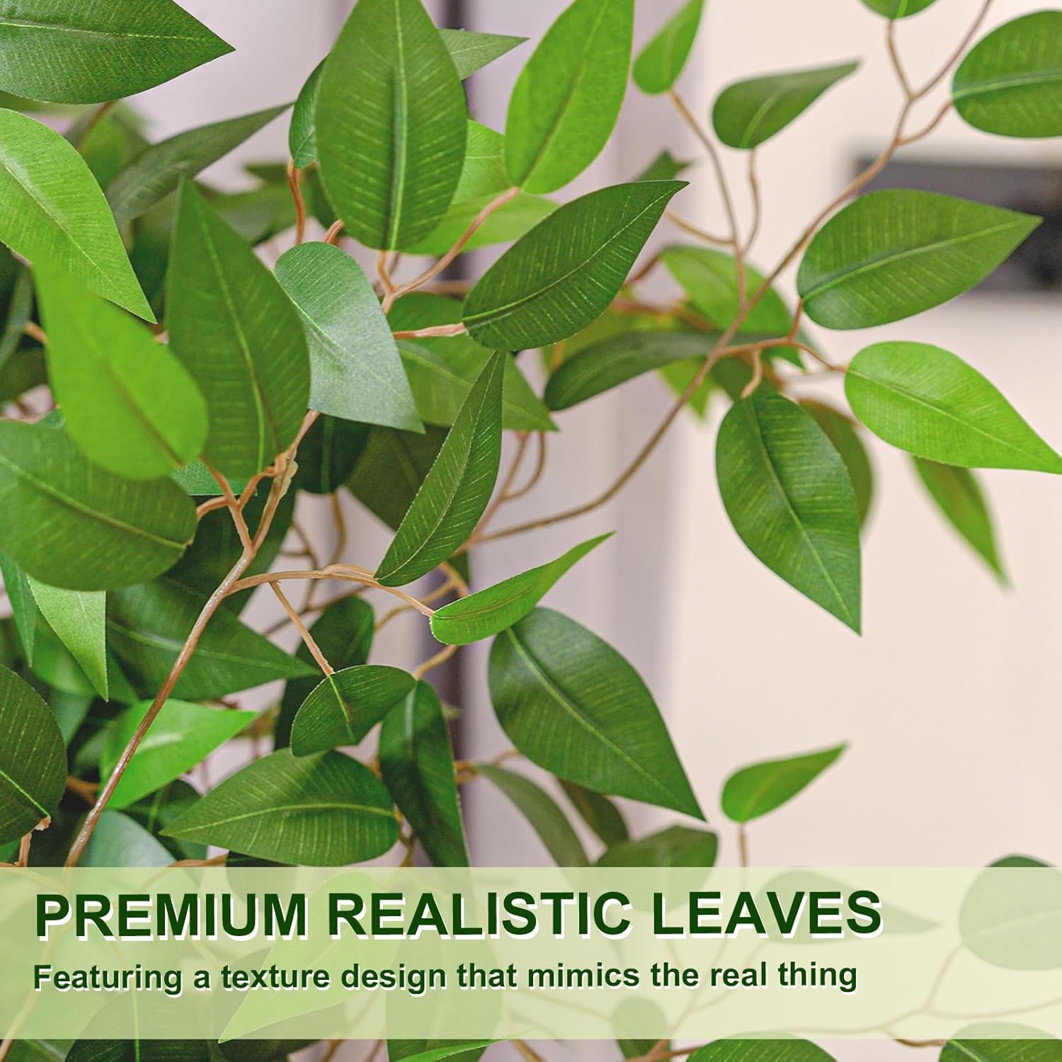 - ✅ Planter Included - Our Ficus tree comes with a 7 inch White Planter ,save extra purchase of planter.The artificial Ficus tree is pre-assembled in a sturdy plastic planter for easy placement and care.