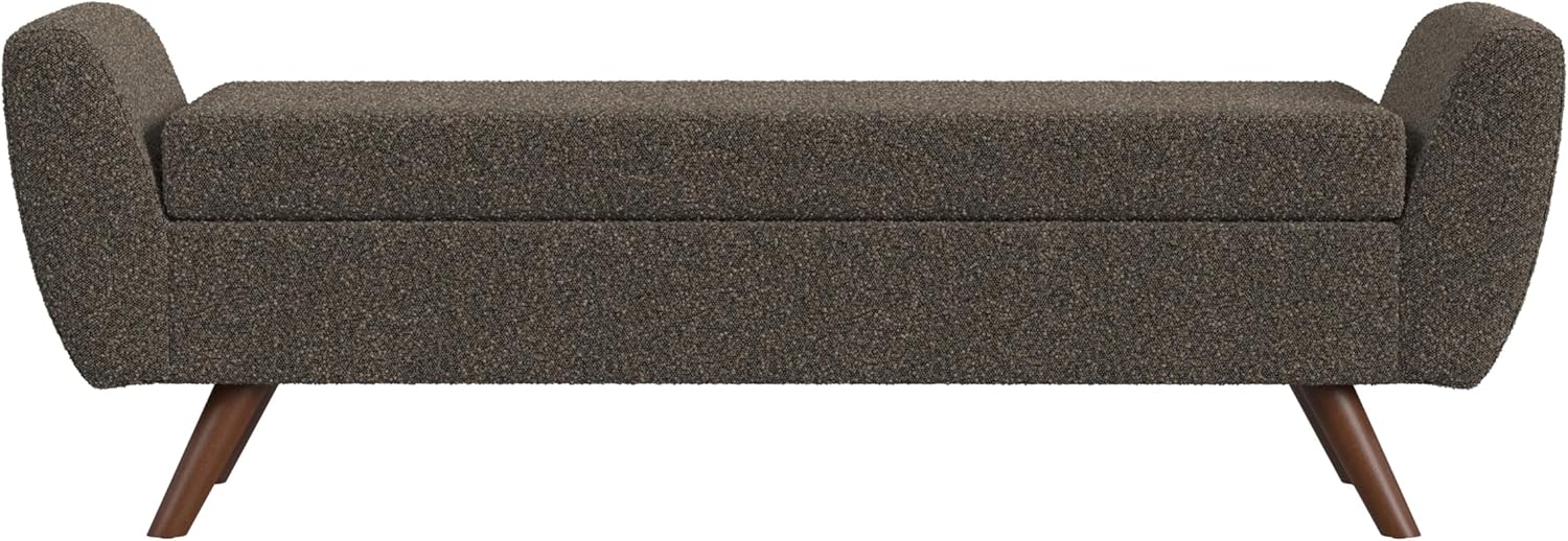 HomePop Modern Storage Bench with Wood Legs Home Décor|Bench with Storage for Living Room & Bedroom - Dark Brown Boucle