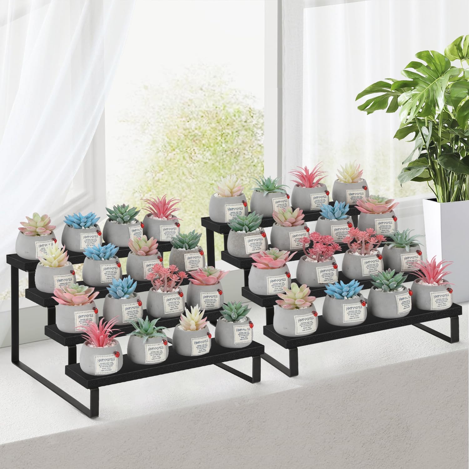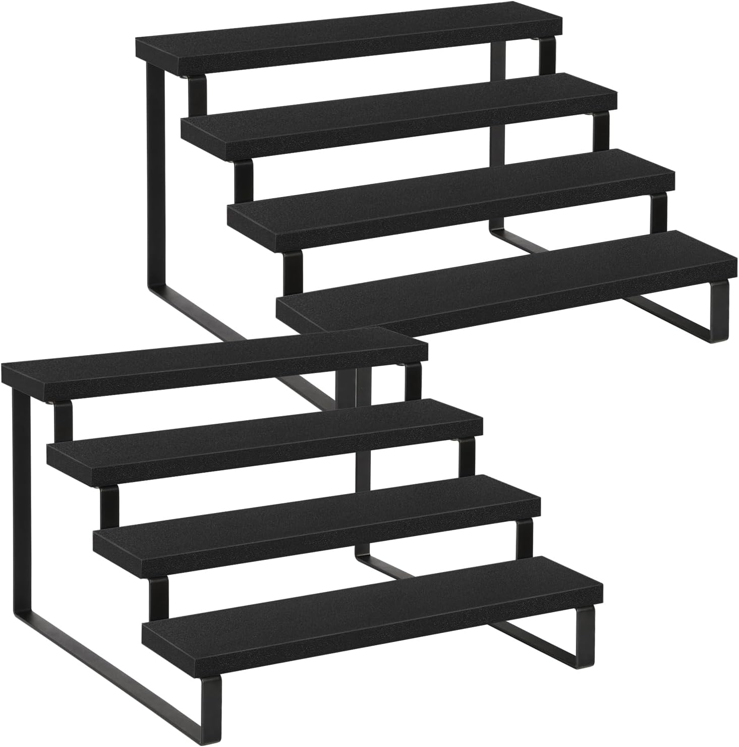 - Quick Setup & Easy Cleaning: You can have this 4-tier display riser stand assembled in 10 minutes with detailed instructions and tools. The wooden surface is waterproof and dust-free, a damp cloth could keep the counter shelf clean. (Assembly tools and accessories are included in the package)