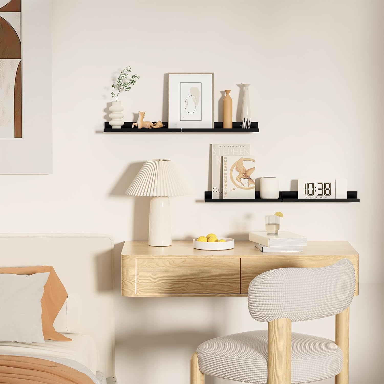 4 Pack Floating Shelves for Wall Storage, Metal Black Hanging Shelves for Living Room/Kitchen/Bedroom/Bathroom Decor, Set of 4 Organizer for Display, Perfume & Book Shelf Wall Mounted