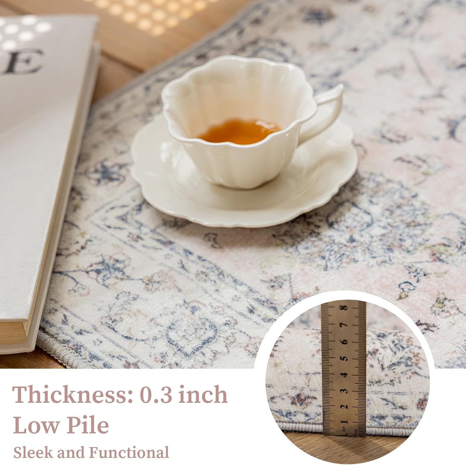 2'x3' Vintage Floral Rug - Persian Inspired Low-Pile Faux Wool Area Rug, Non-Slip Washable Small Rug for Bedroom, Nursery, Dorm, Soft Pink Boho Chic Decor