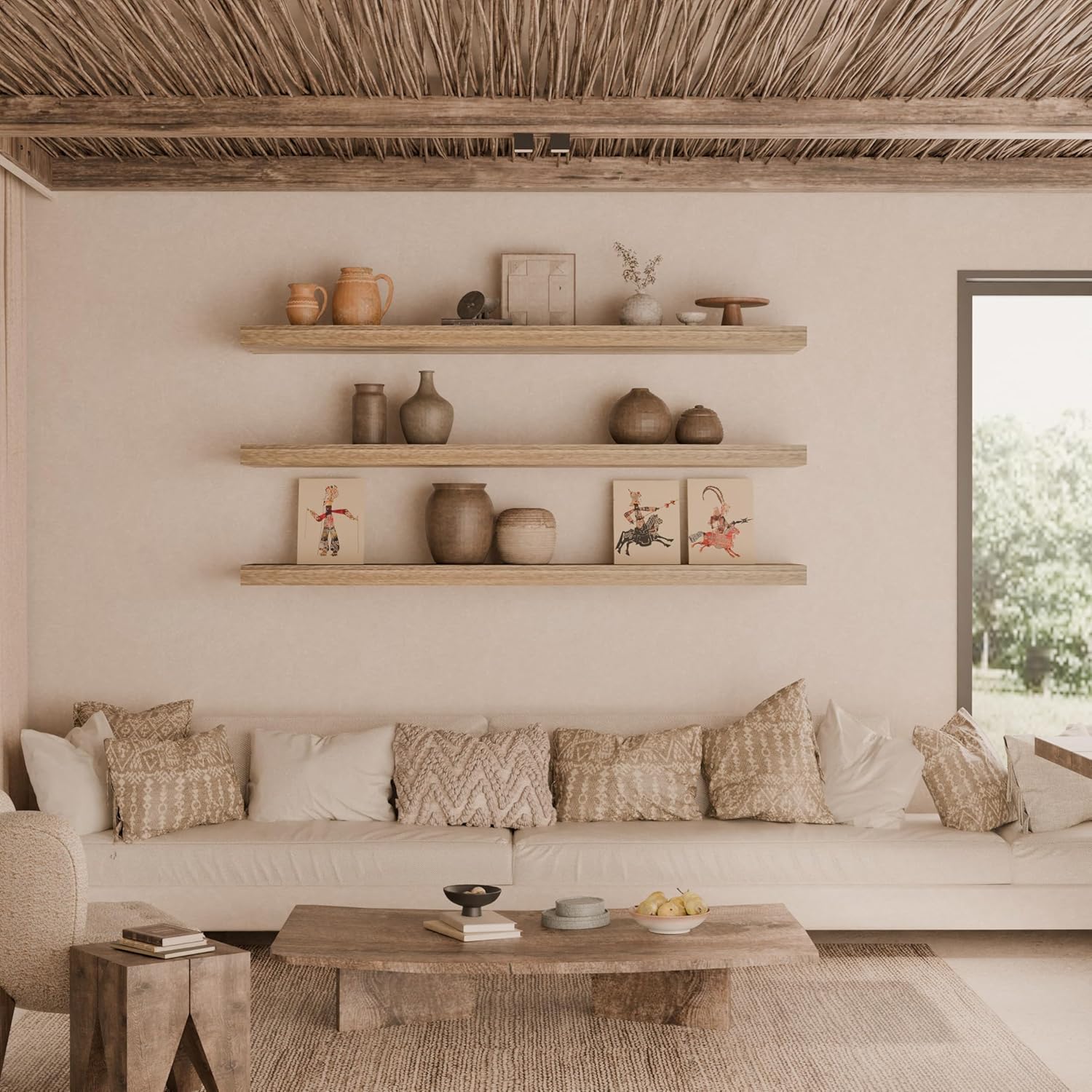 These wall shelves are both functional and stylish, giving my living room a fresh look.