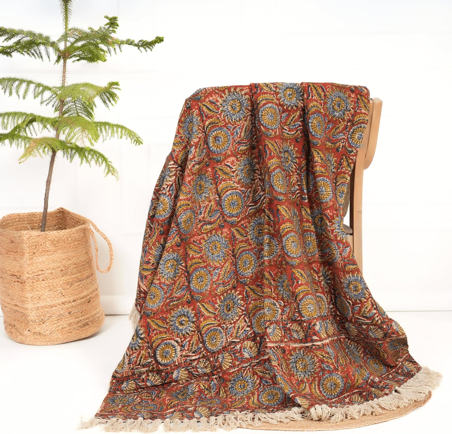 - Handcrafted Beauty from SARVAA: Made with 100% breathable cotton, this SARVAA throw features a traditional floral block print in vibrant orange and navy hues—adding warmth, artistry, and color to any space.