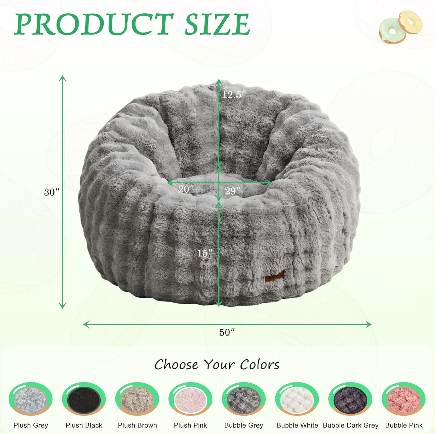 Hobestluk Bean Bag Chair Oversized Bean Bag Chair for Adults Donut-Shaped Large Bean Bag with Spacious Design for Living Room Bedroom or Reading Nook (Bubble Grey)