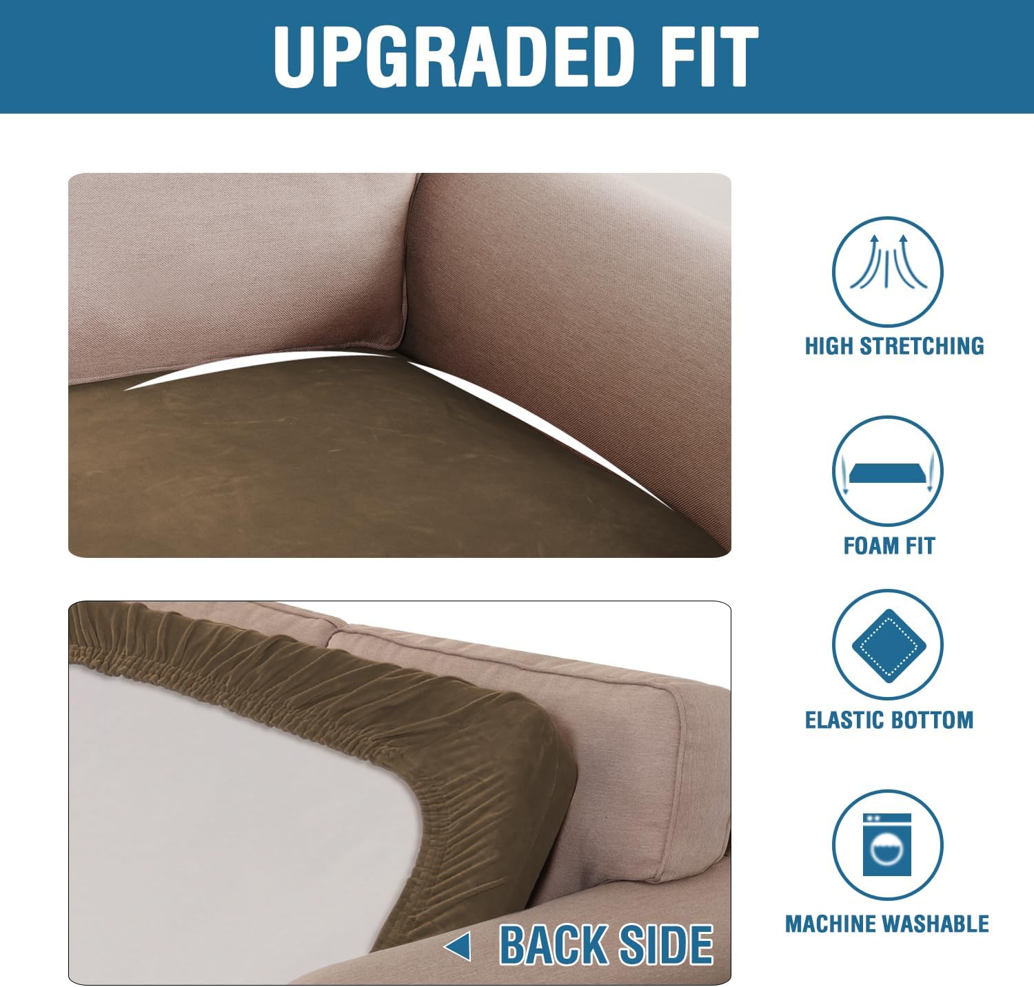 H.VERSAILTEX Velvet Stretch Individual Couch Cushion Cover Plush Cushion Slipcover for Loveseat Sofa Cushion Furniture Protector Seat Cushion Sofa Cover (1 Piece Sofa Cushion Cover, Bronze Brown)